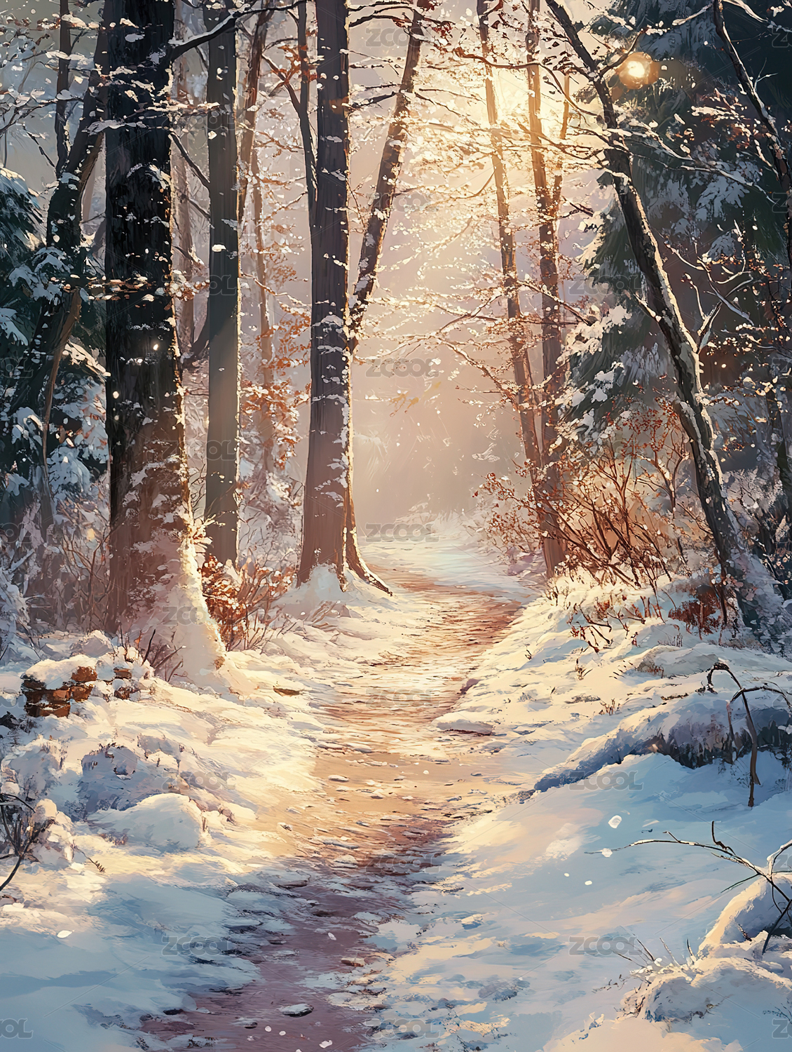 冬日暖阳下的雪径