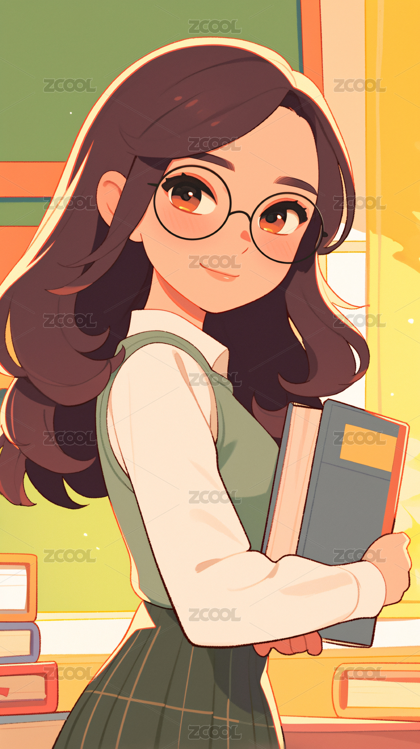 抱着书的女老师
