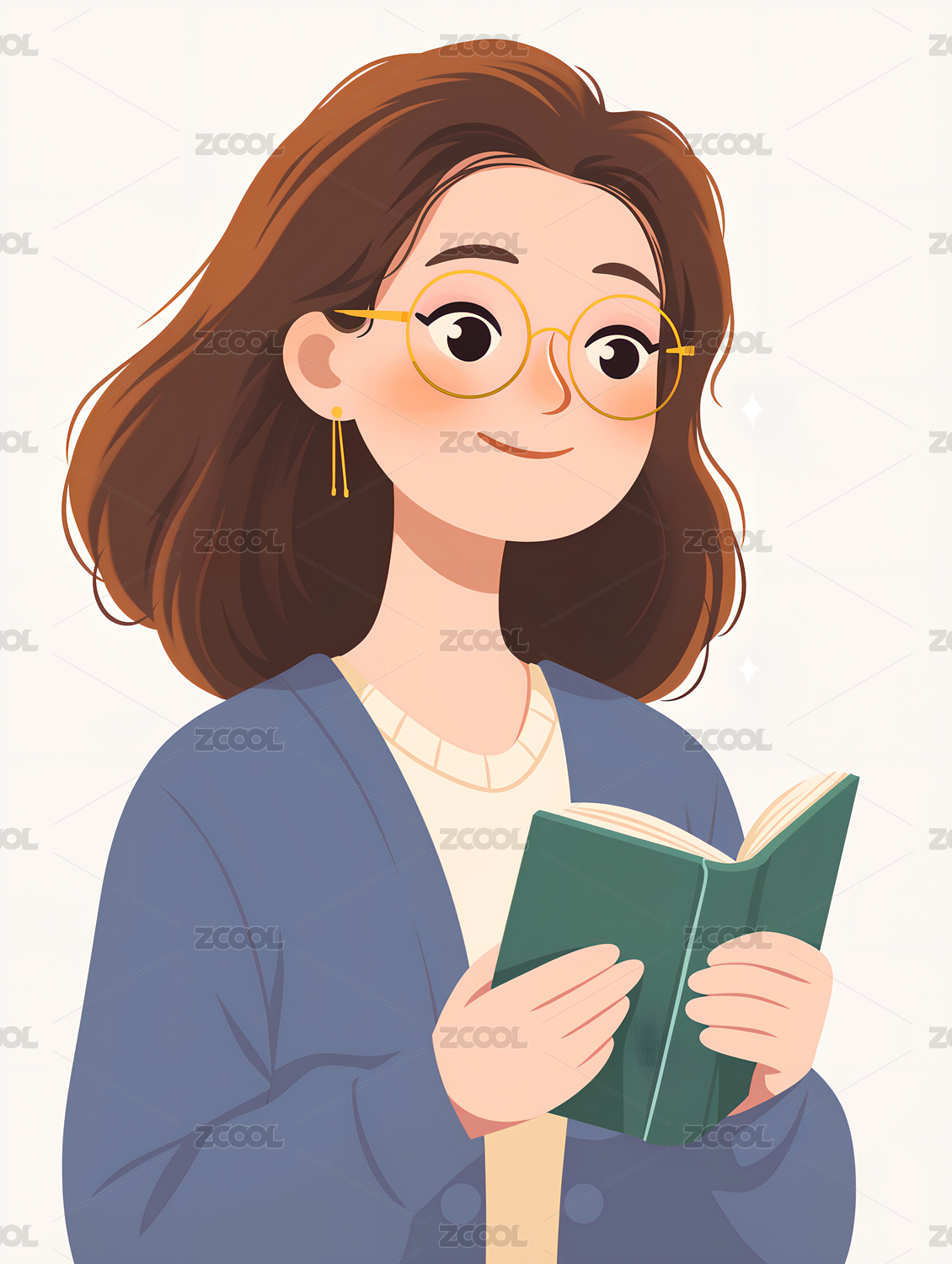 AIGC,书,人物,卡通,女人,学习,导师,形象,教师,教育