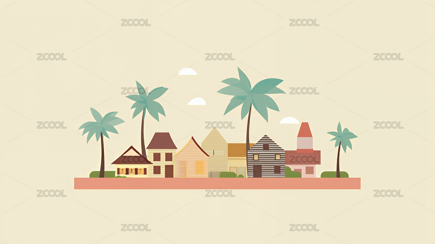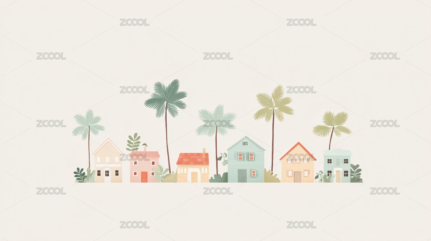 简约插画风的房屋与棕榈树图景