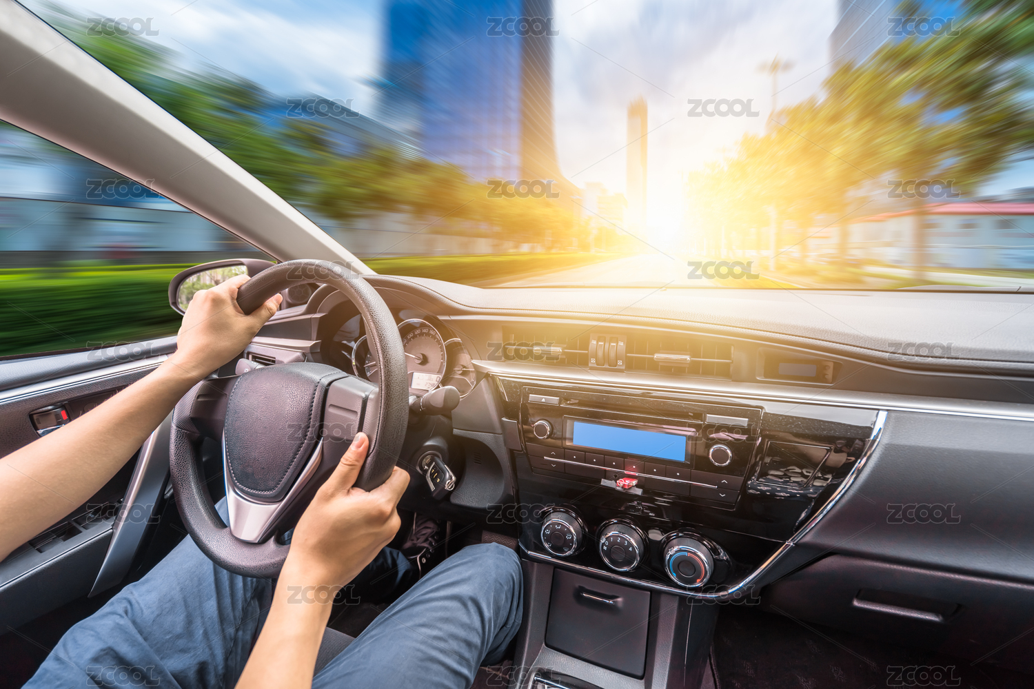 行驶在路上的汽车内部