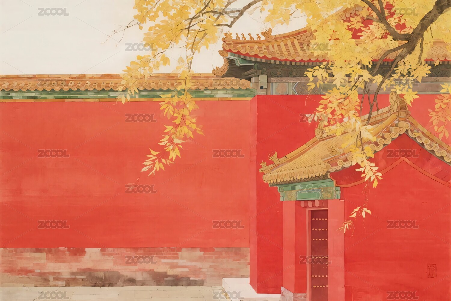 古建筑红墙插画
