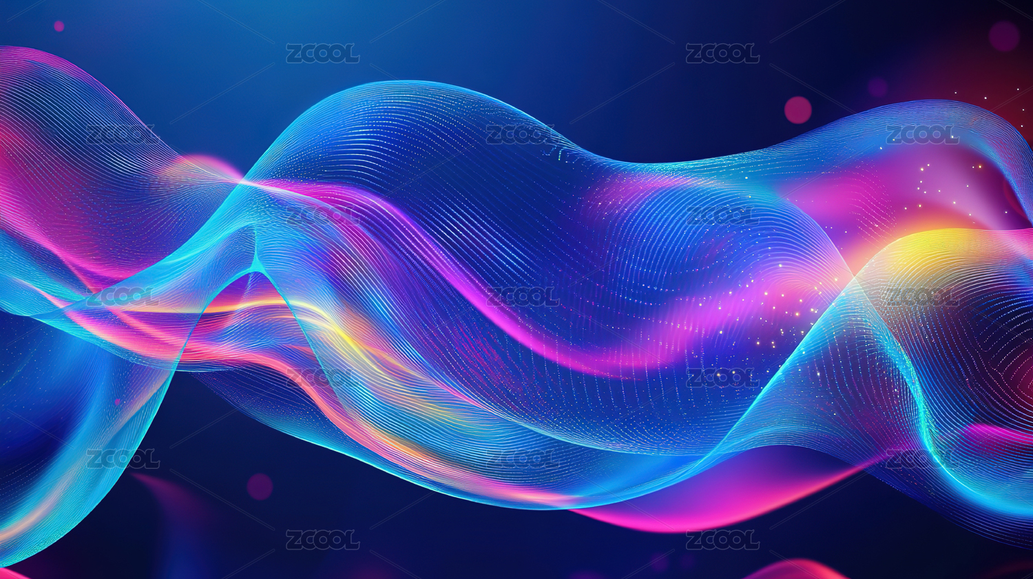 弯曲,抽象,光,设计,波浪,蓝色,发光,科技,艺术,插画