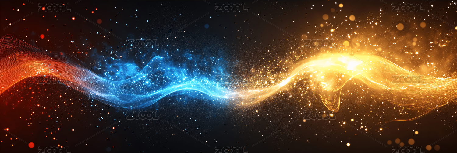 蓝色橙色粒子光波