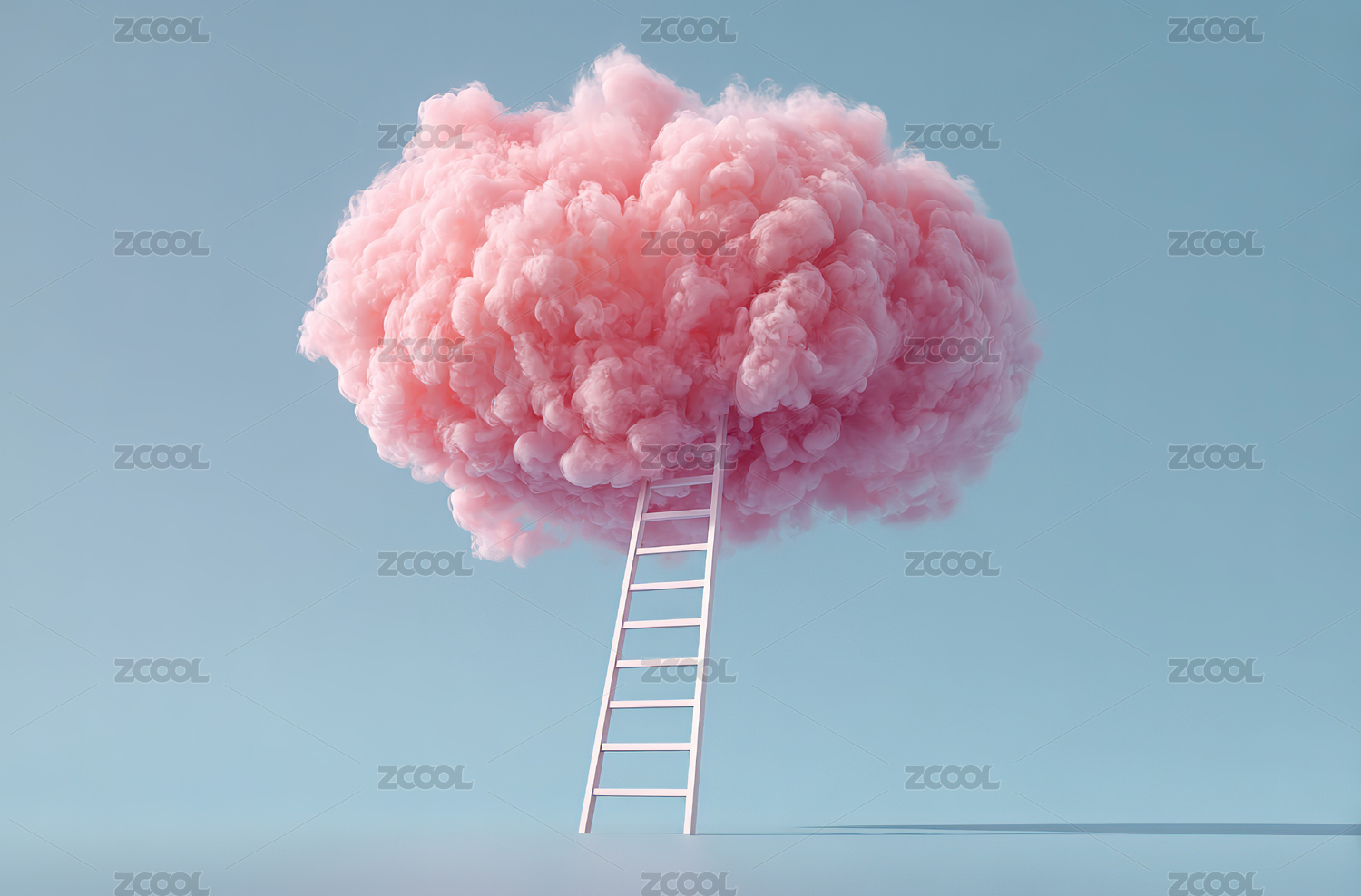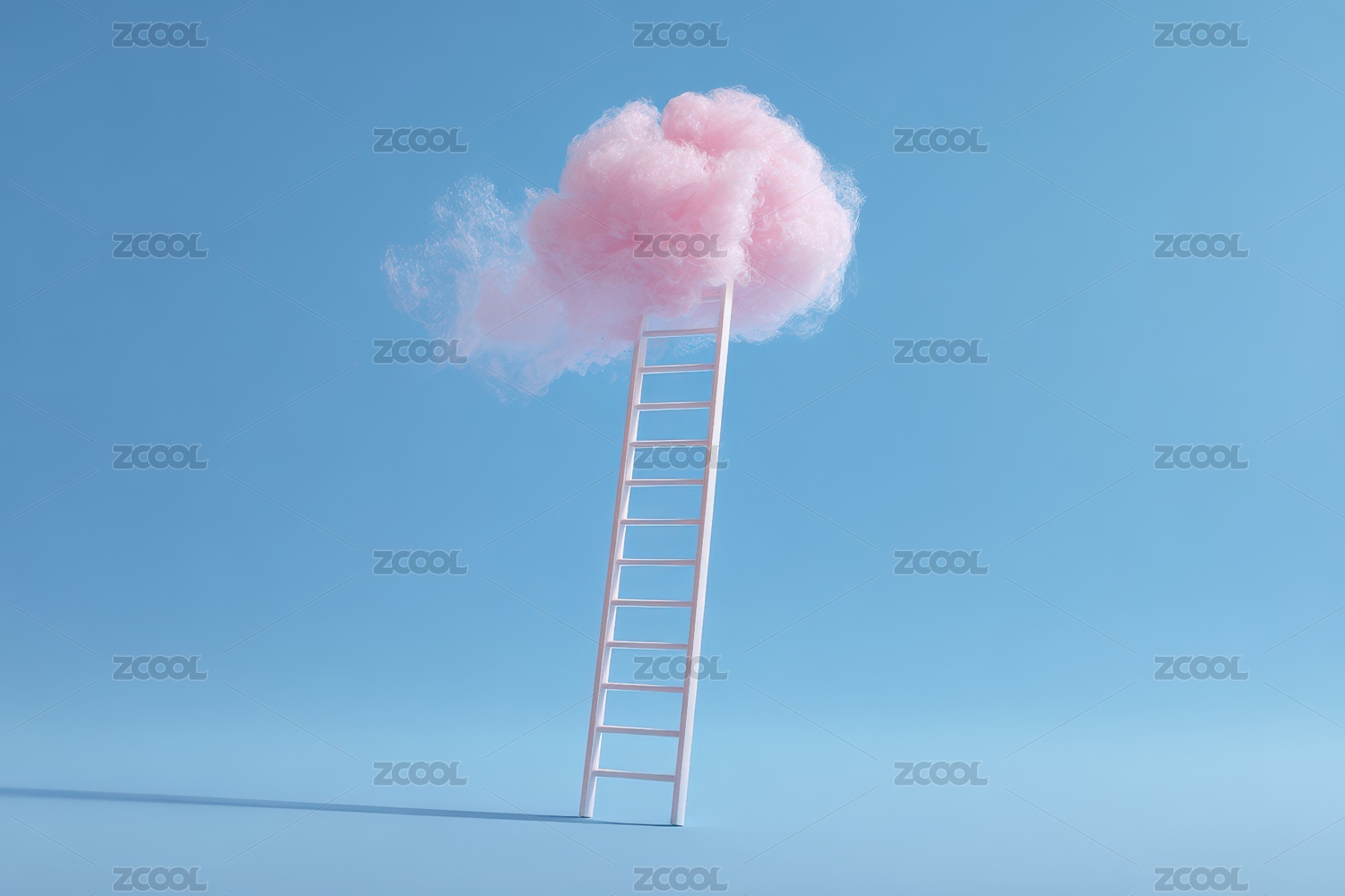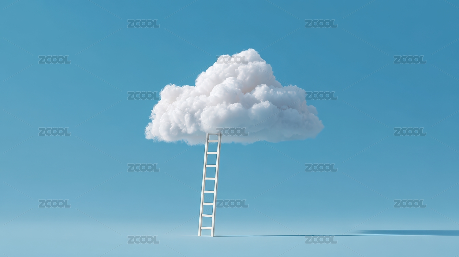 云梯,云端,梯子,白云,云朵,蓝天,通往,通道,道路,云