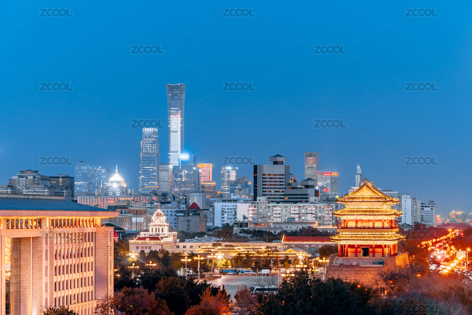 北京市前门正阳门箭楼古建筑和现代建筑远景