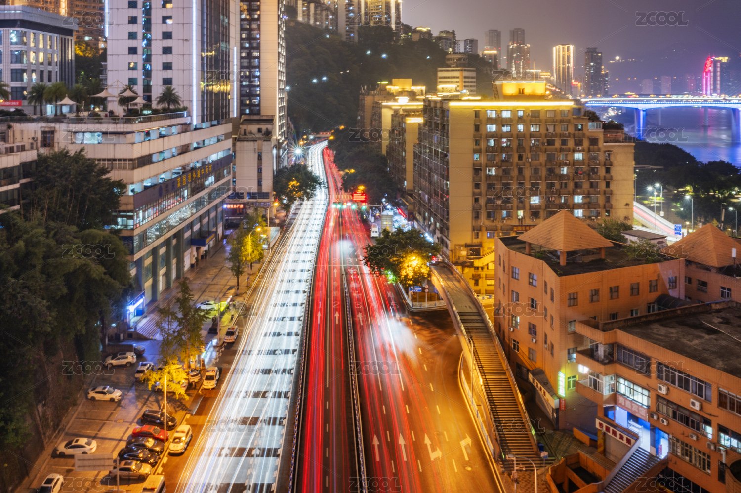 远眺夜色中的重庆石板坡长江大桥