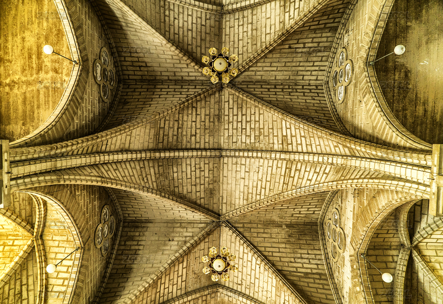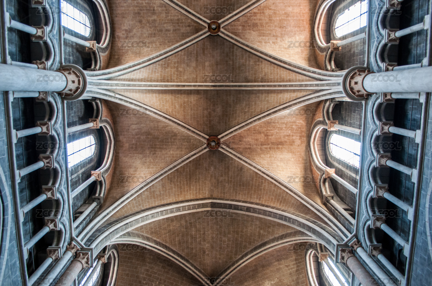 法国巴黎市玛黑区街道旁古典建筑内部的拱顶造型