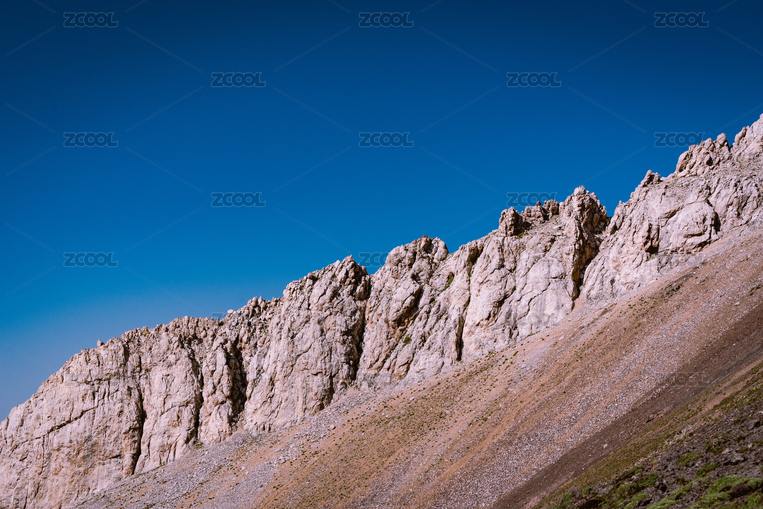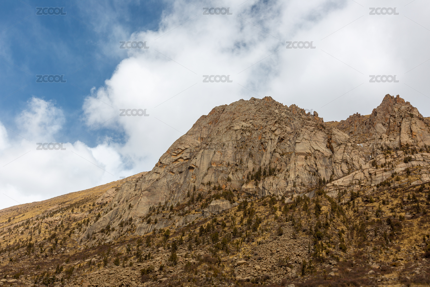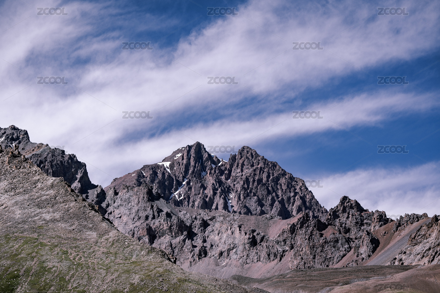 中国新疆独库公路上的天山,怪石嶙峋的山体