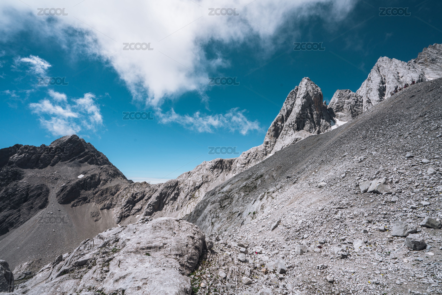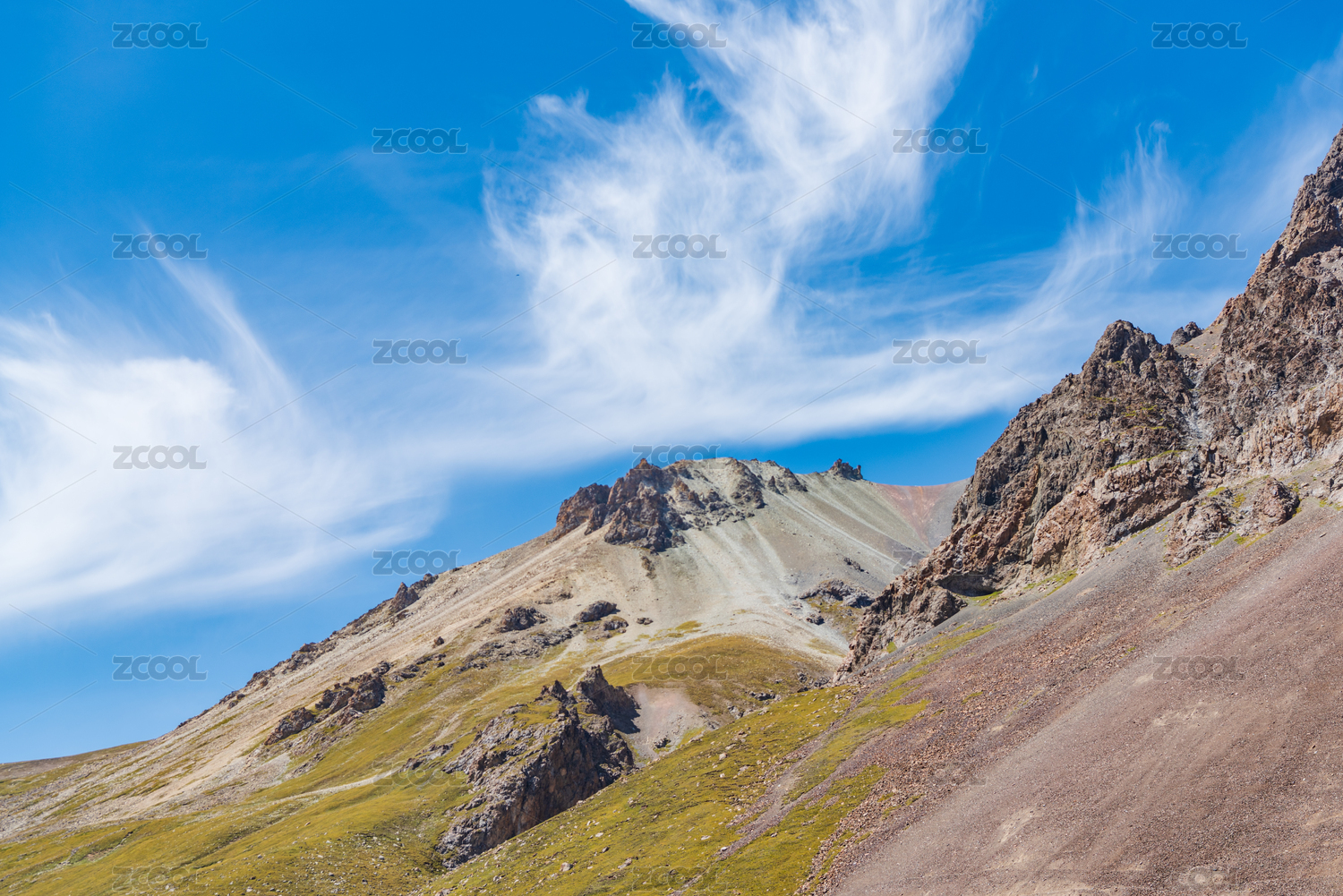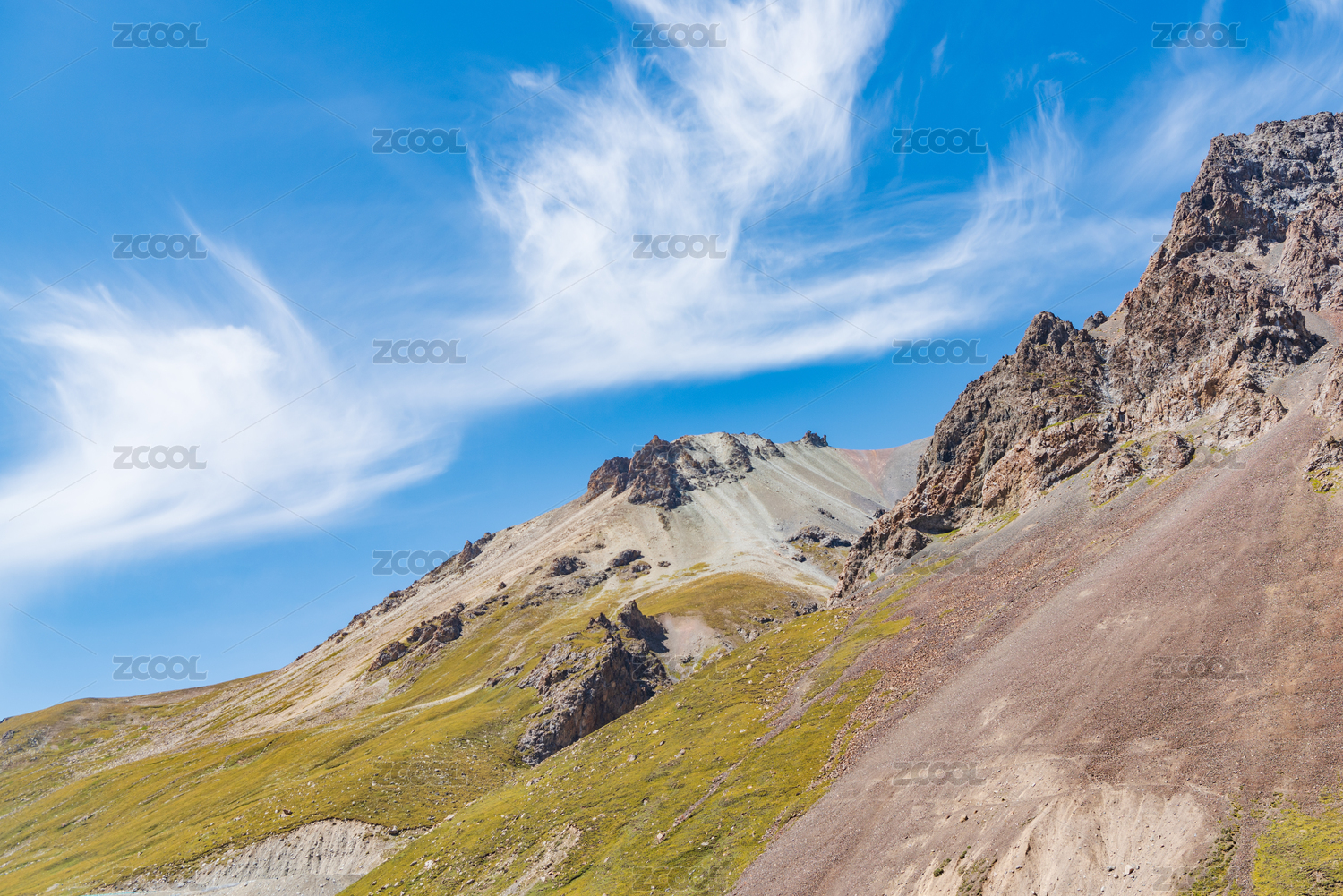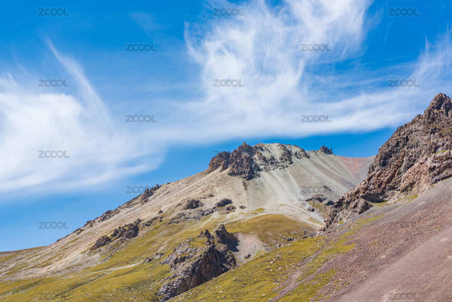 中国新疆独库公路上的天山,怪石嶙峋的山体