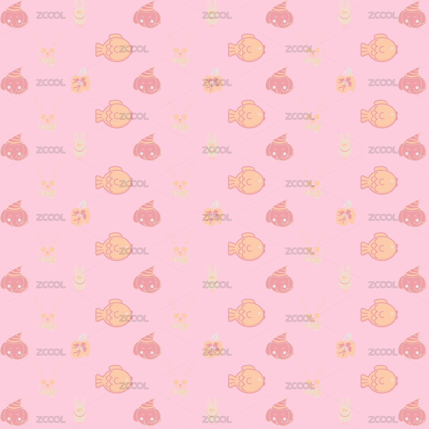 可爱卡通小猫吃鱼儿童无缝四方连续背景