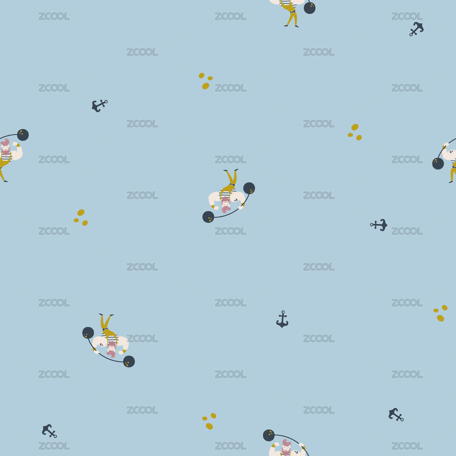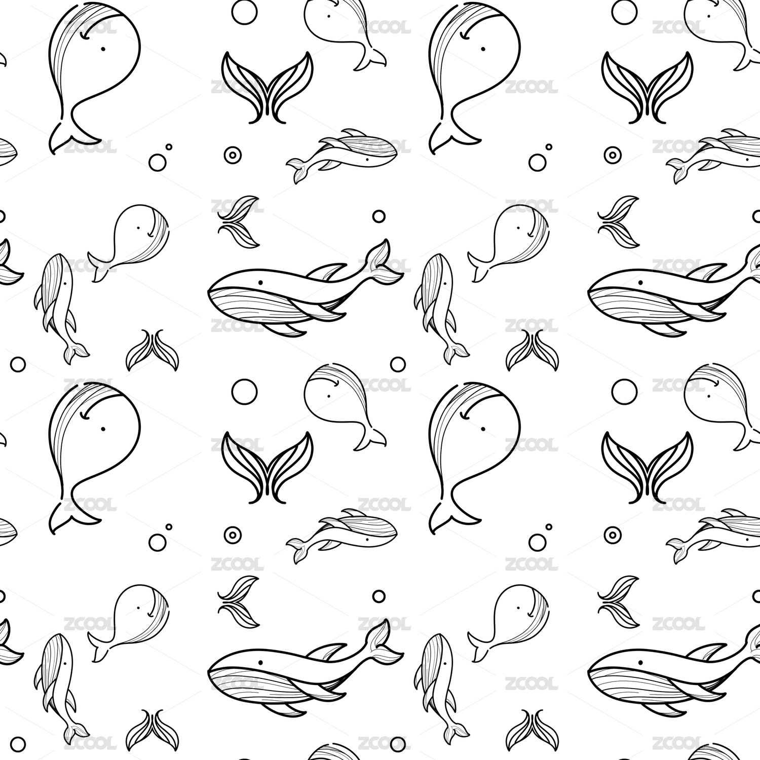手绘可爱卡通海洋生物帆船鲸鱼海星插画印花