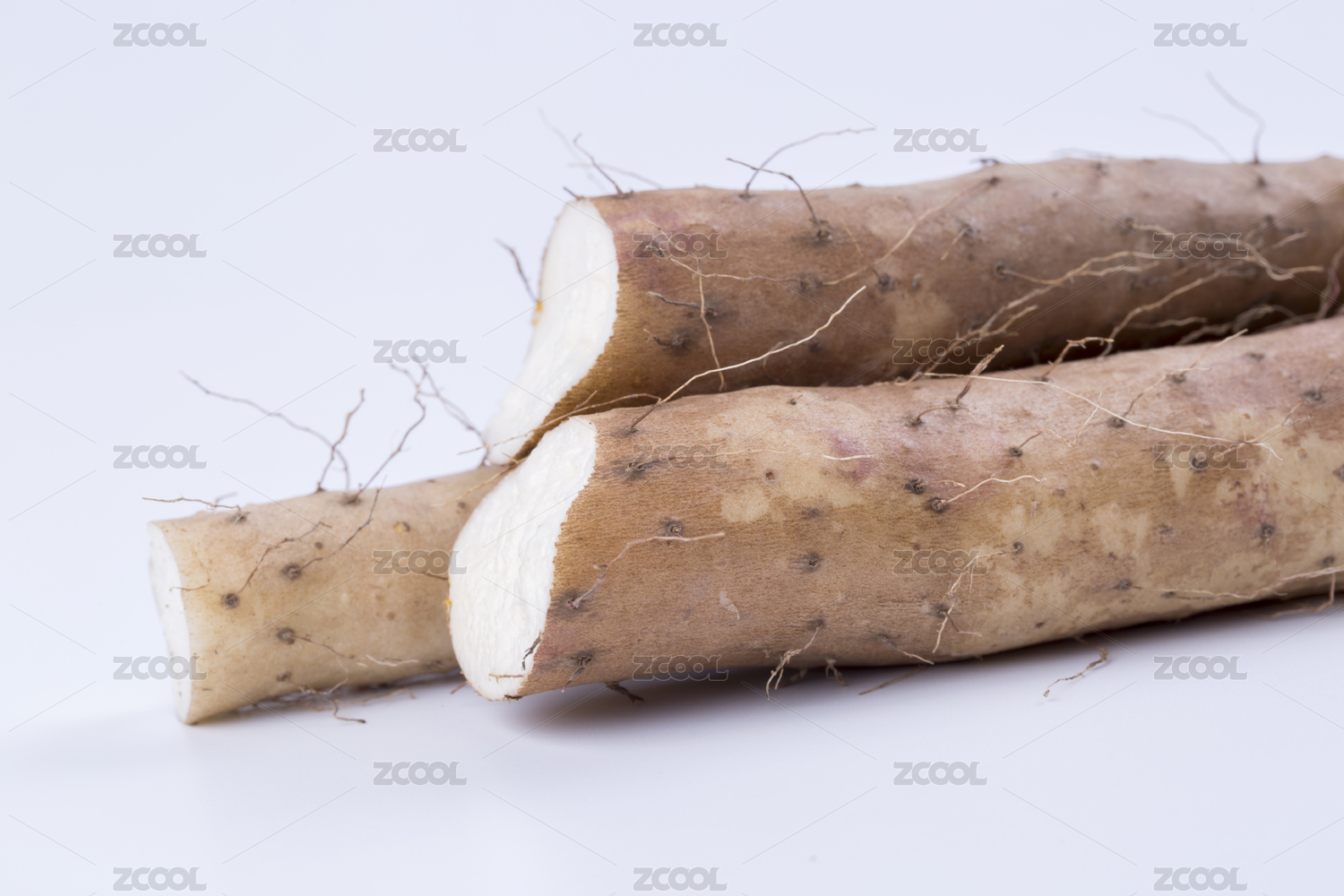 白色背景上摆放的新鲜山药