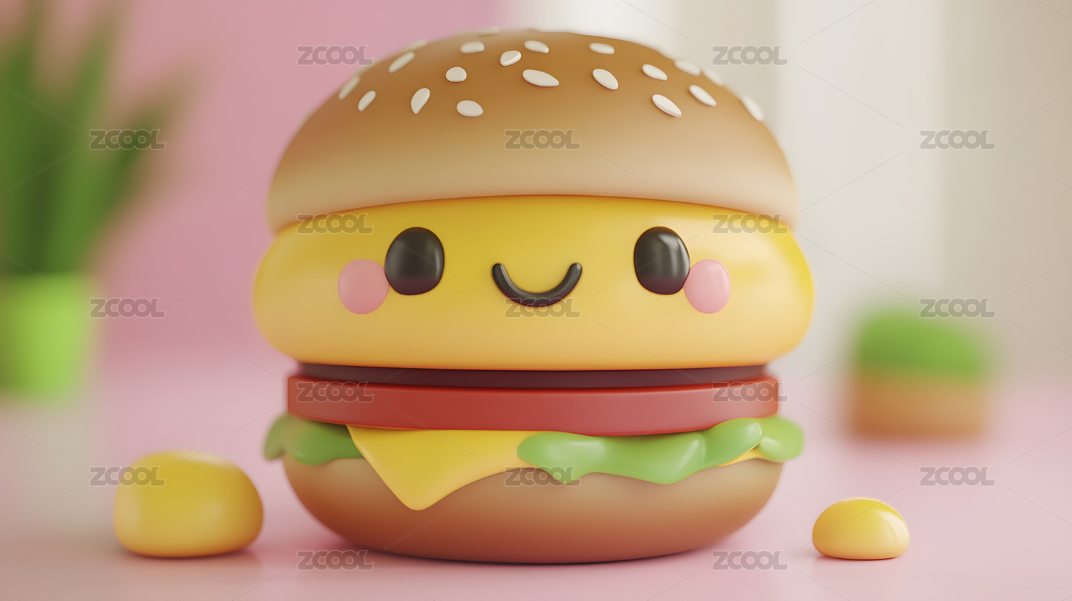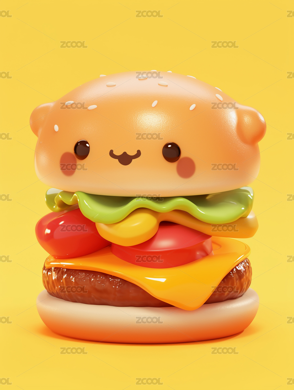 3D渲染立体汉堡可爱表情