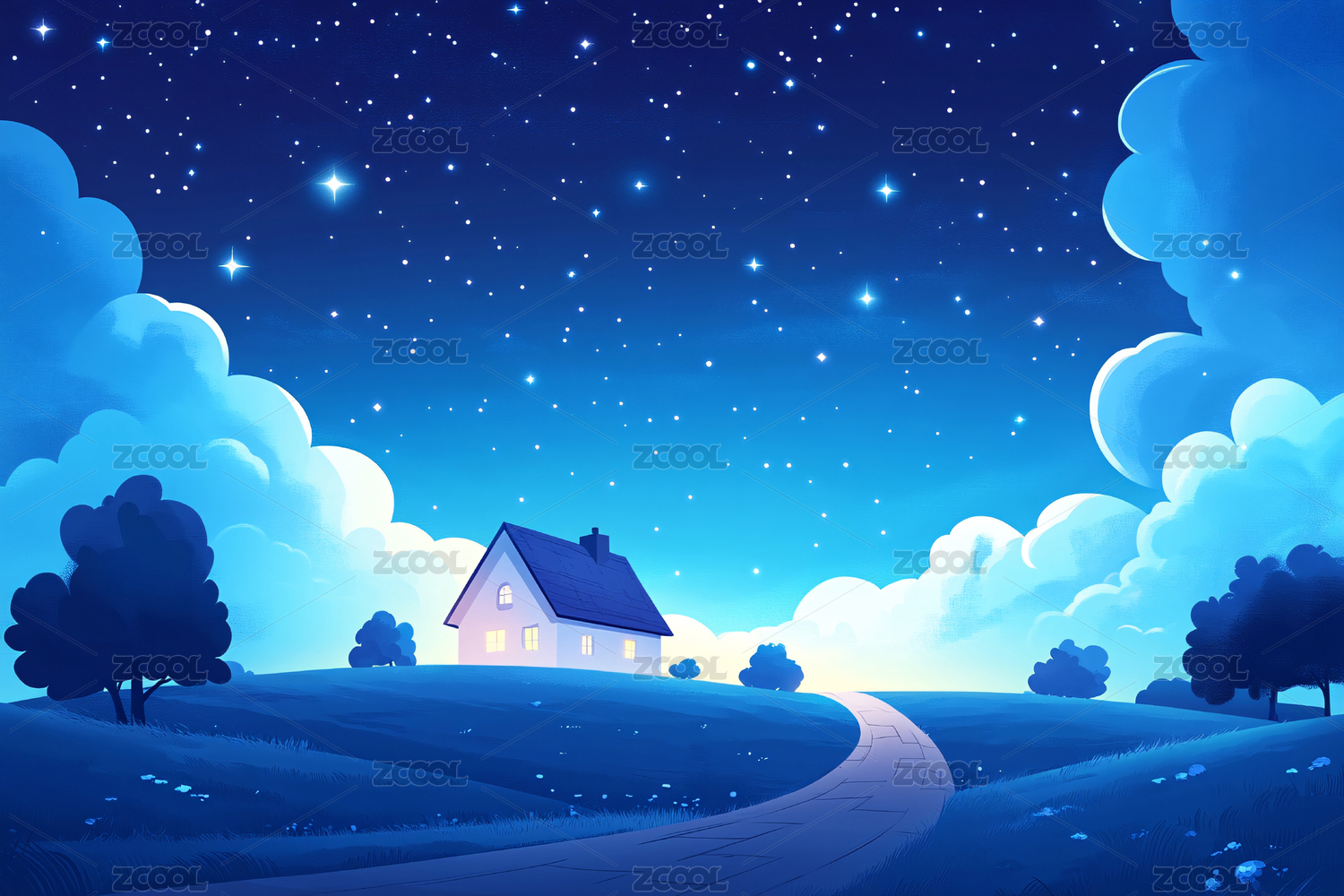 夏天,夜晚,房屋,农村,插画,房子,家,插图,天空,建筑