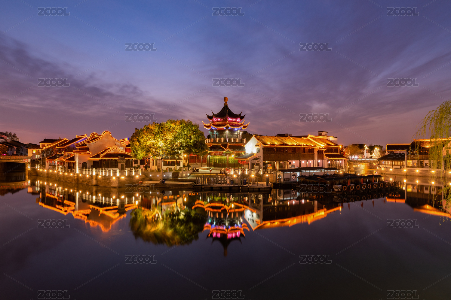 浙江嘉兴嘉善,新西塘越里古镇景区夜景