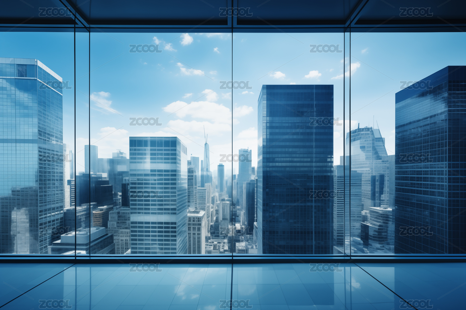 虚拟蓝色办公楼玻璃窗背景图