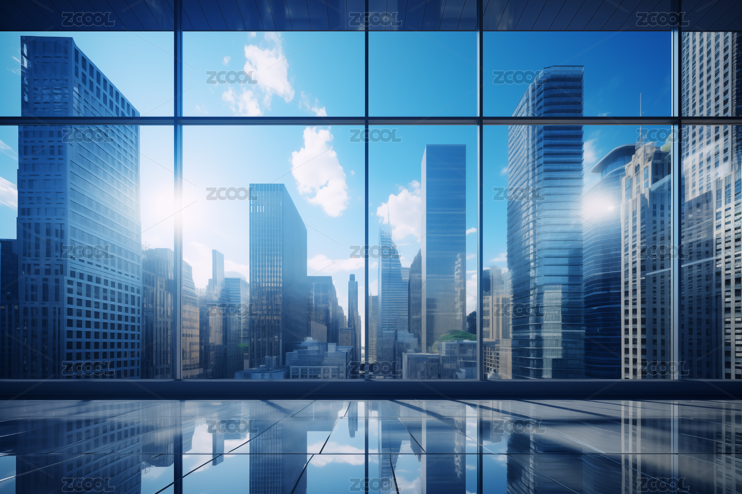 现代都市玻璃幕墙办公室