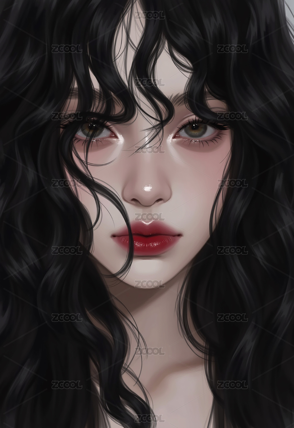 卷发,毛毯,手,妩媚,妆容,暗黑,少女
