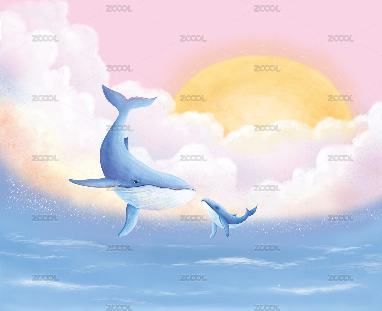 鲸鱼,鲸,海洋,梦幻,云,云层,日落,落日,紫色,蓝色