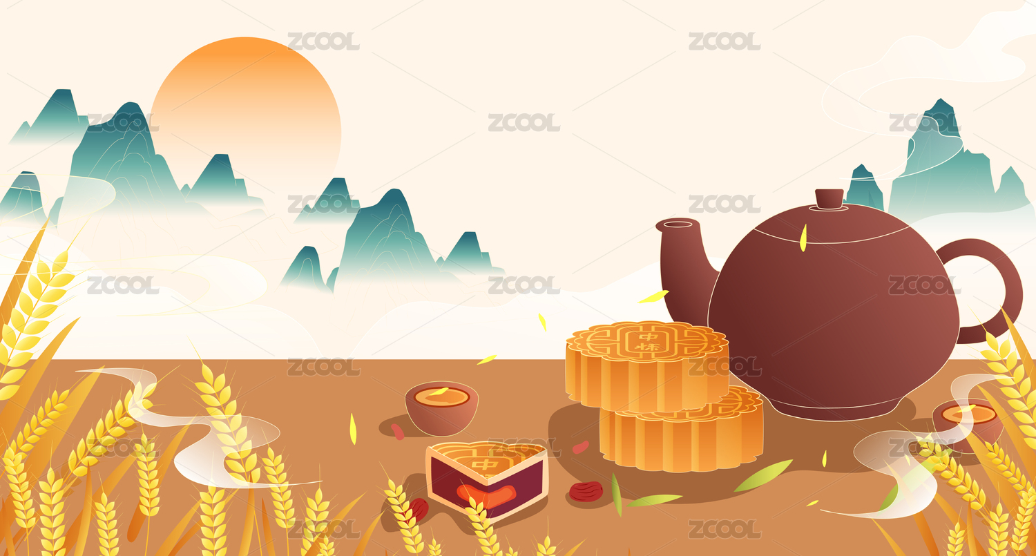八月十五中秋节中国传统节日古典挂灯笼插画