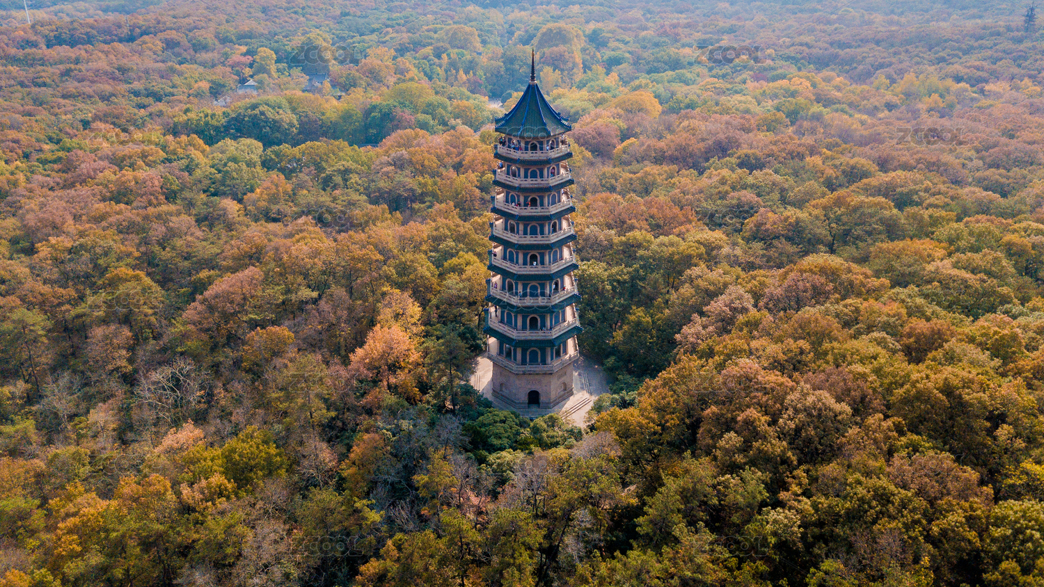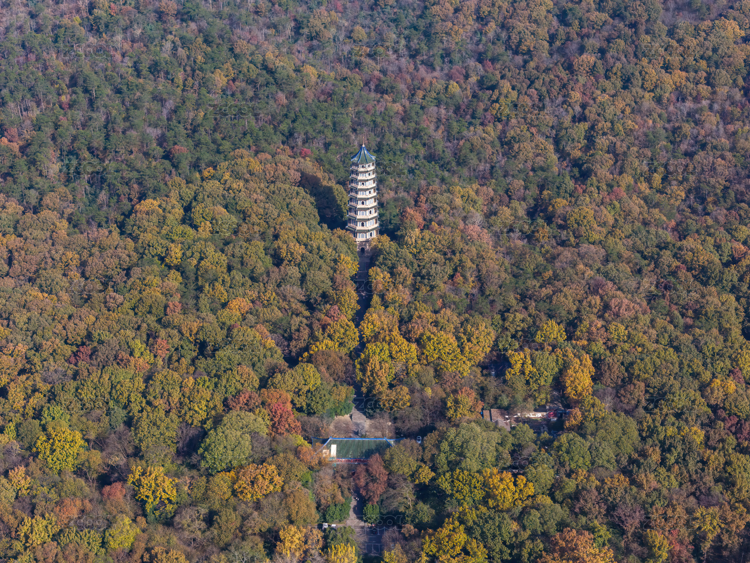 江苏省南京灵谷寺灵谷塔秋景航拍