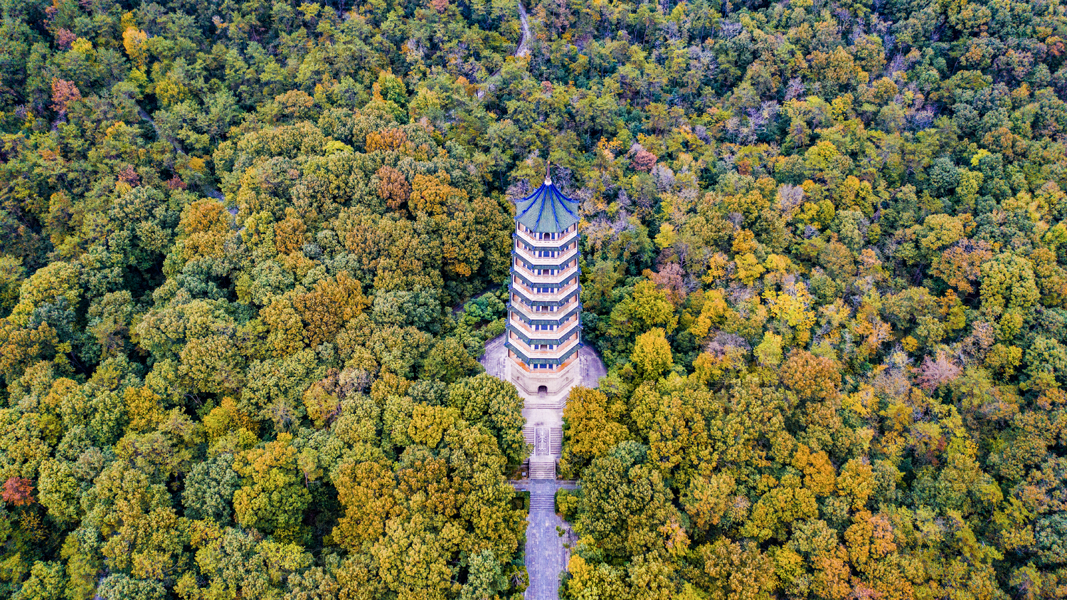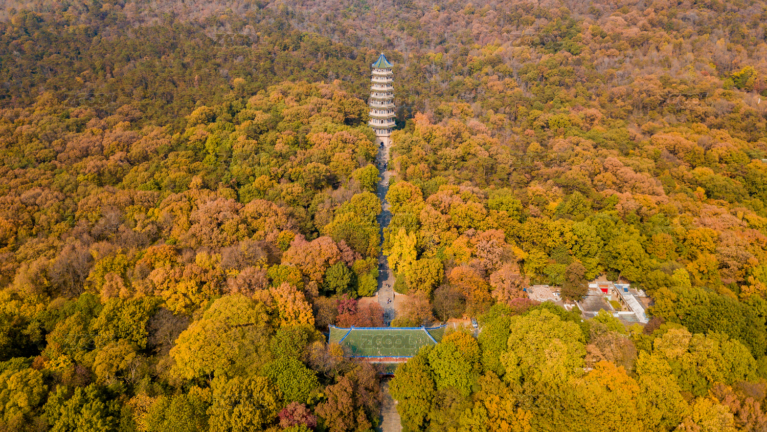 南京灵谷景区:灵谷塔和无梁殿的秋色