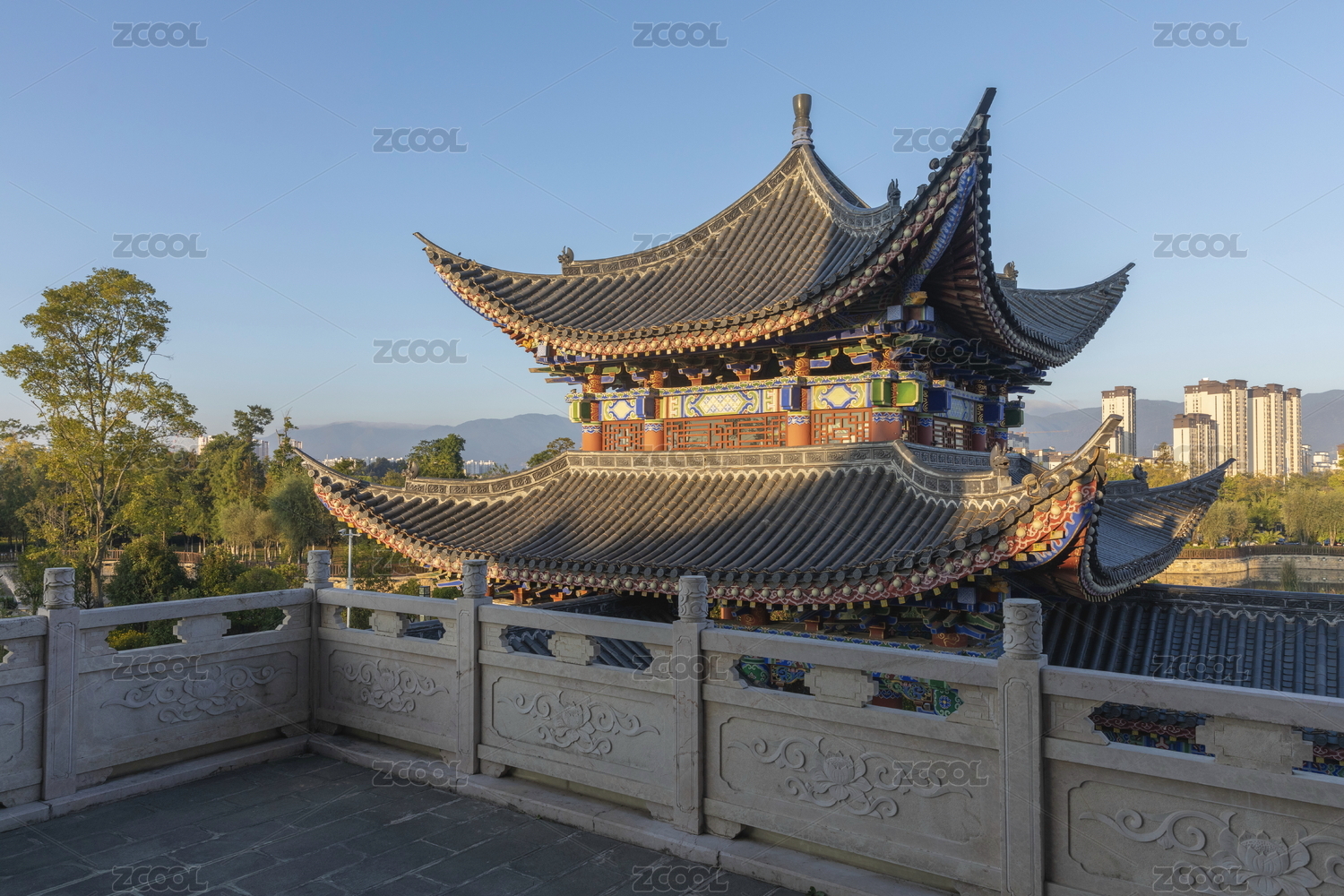 中国云南省昆明市西山景区凌虚阁四方亭园林建筑