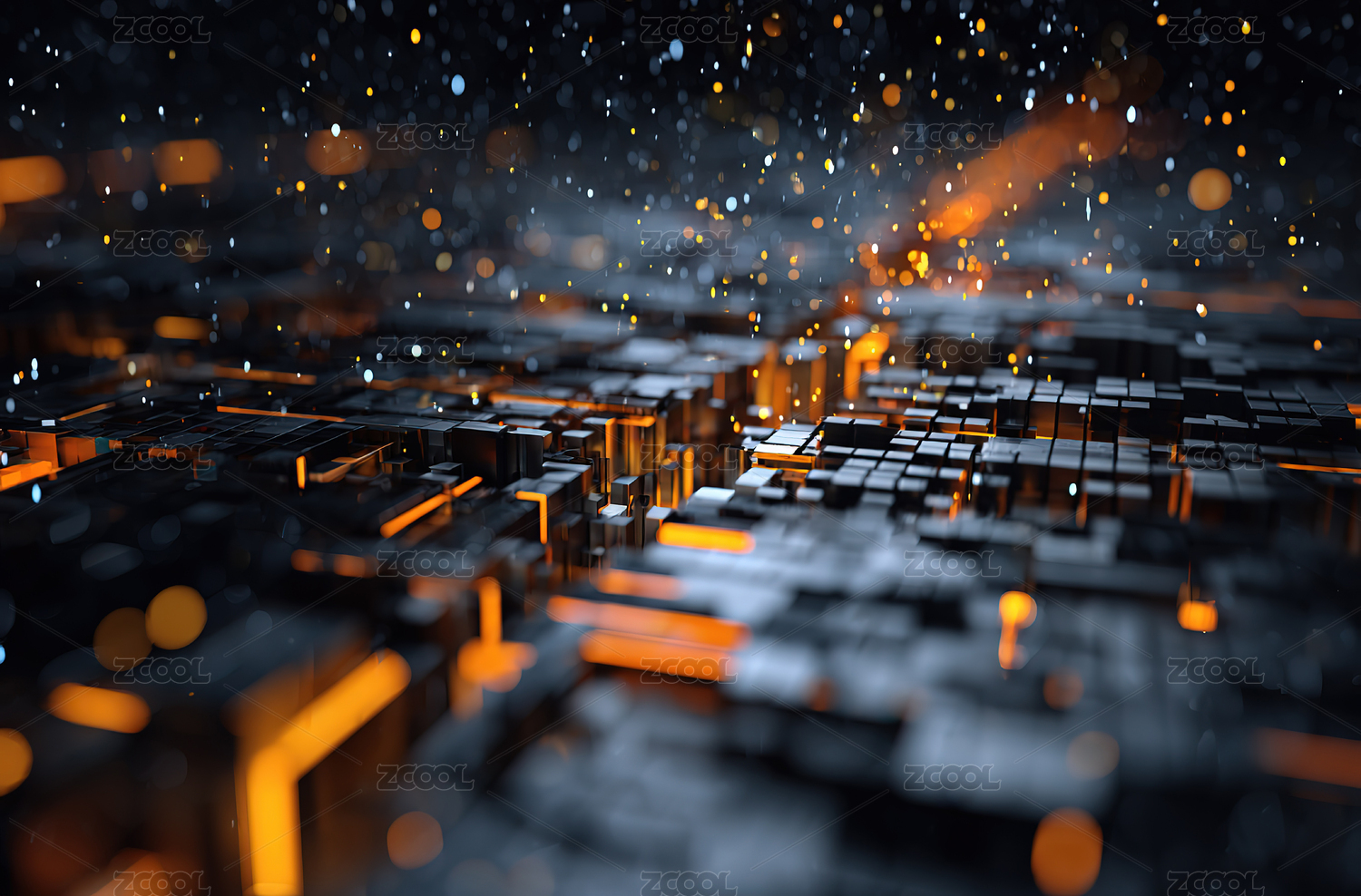 黑金,立方体,发光,抽象,科技,插画,矩阵,光粒