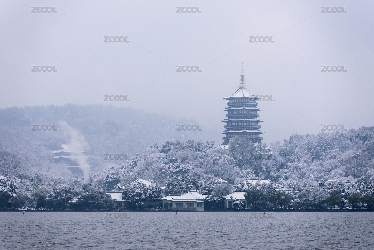 中国浙江杭州西湖风景区雷峰塔冬季景观
