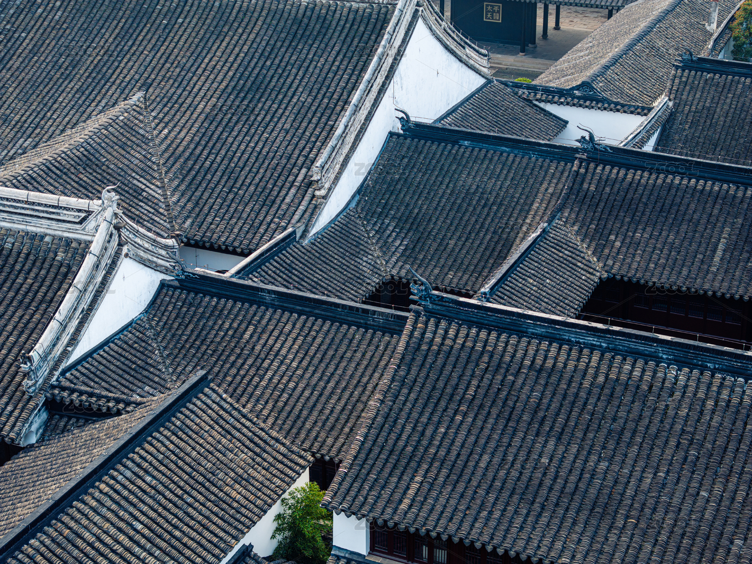中国,江苏,苏州,太平天国忠王府,传统,屋顶,航拍视角,瓦,清朝,建筑