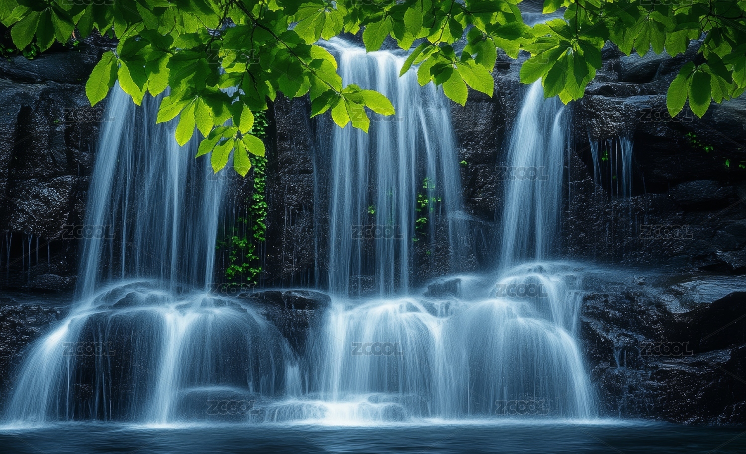 瀑布下的宁静森林