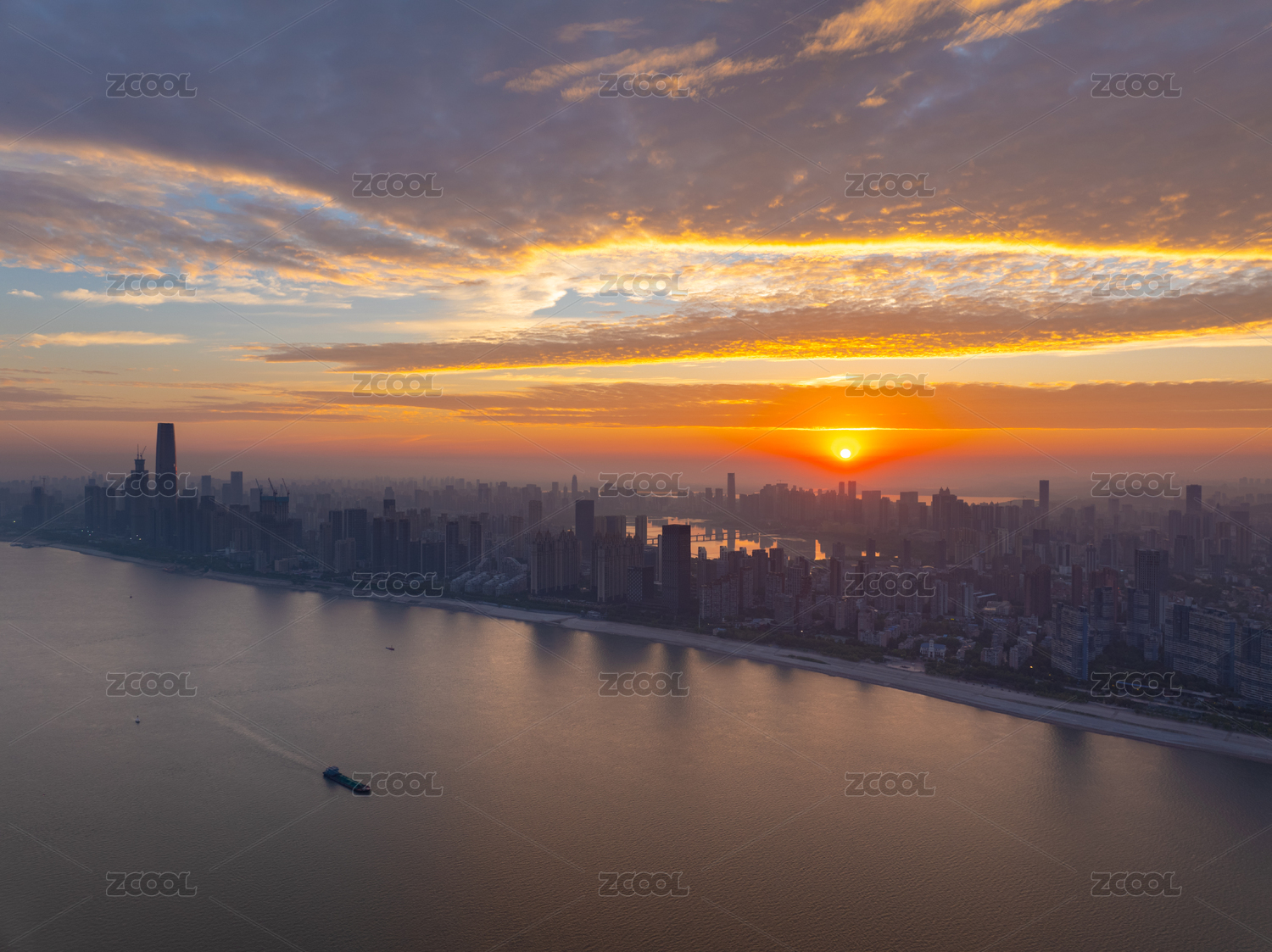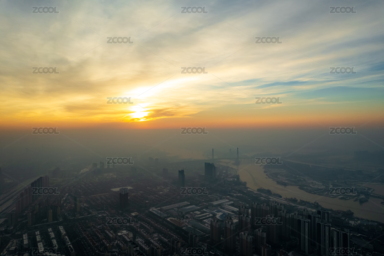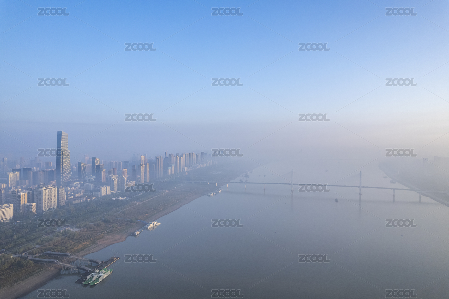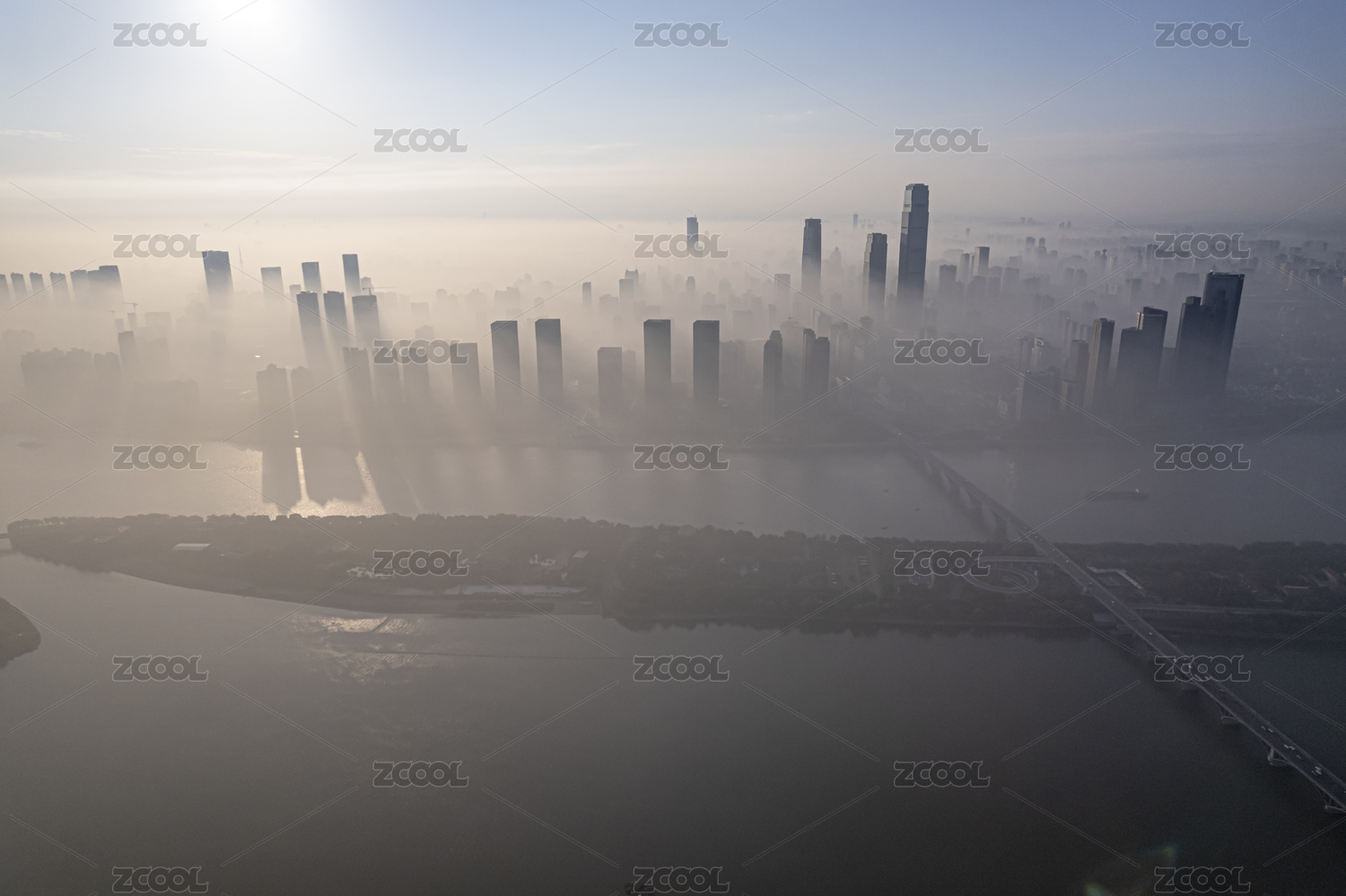 长沙晨雾日出眺望城市CBD航拍摄影配图