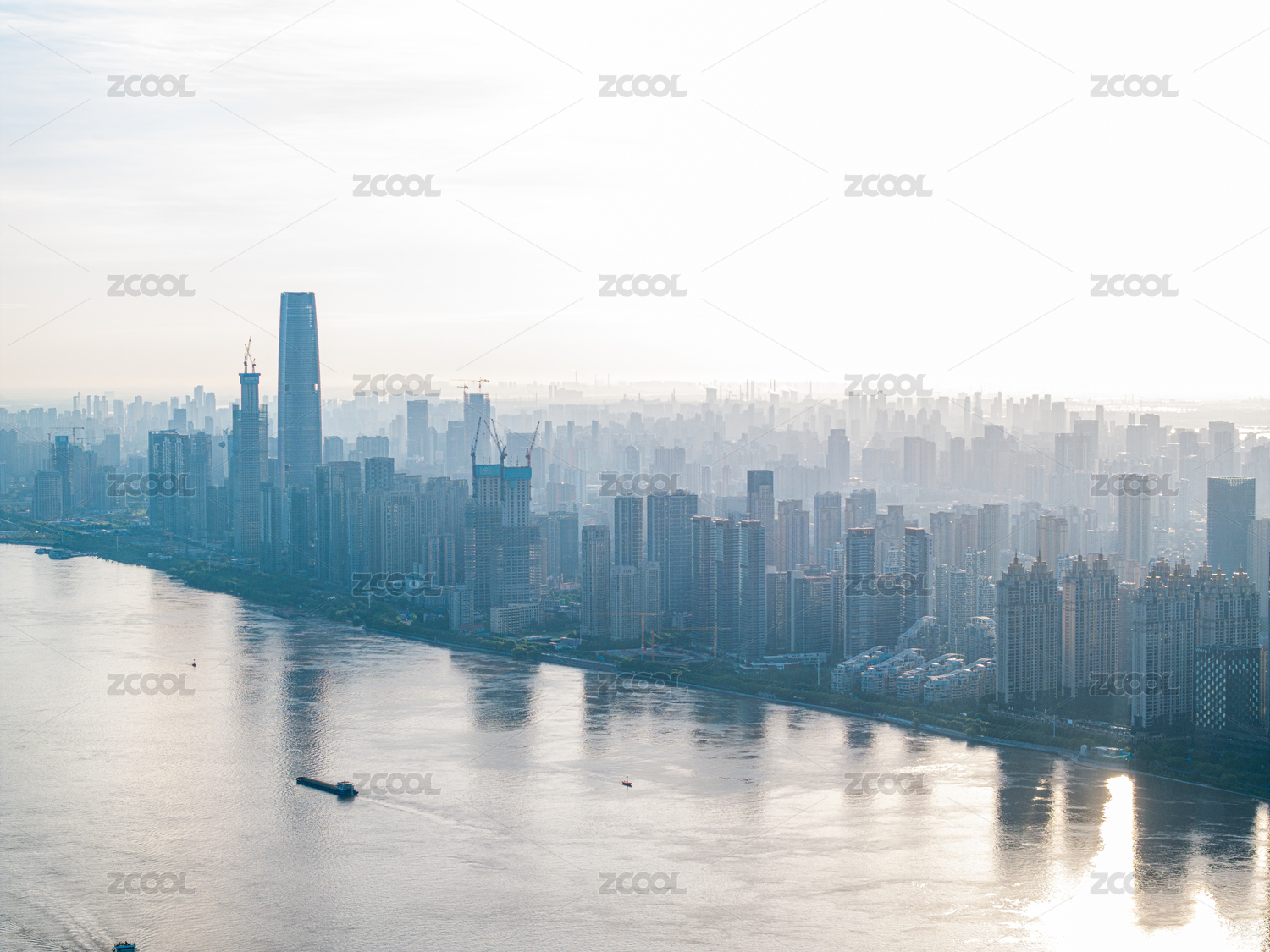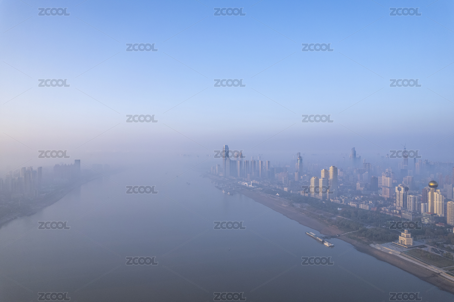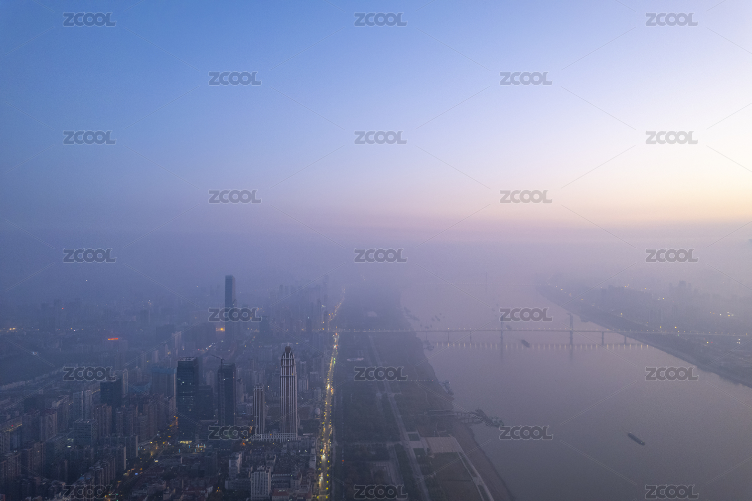长沙晨雾日出眺望城市CBD航拍摄影配图