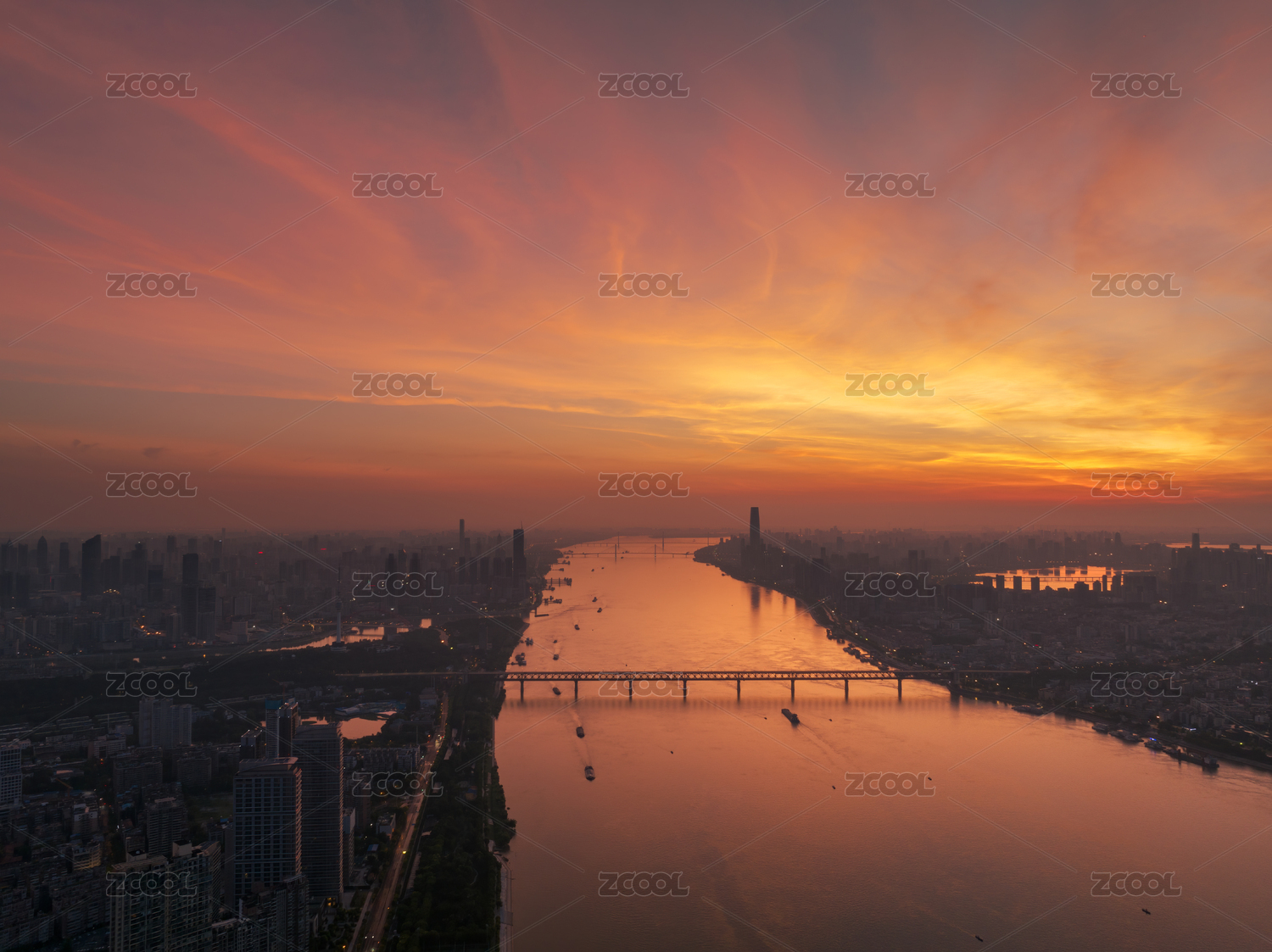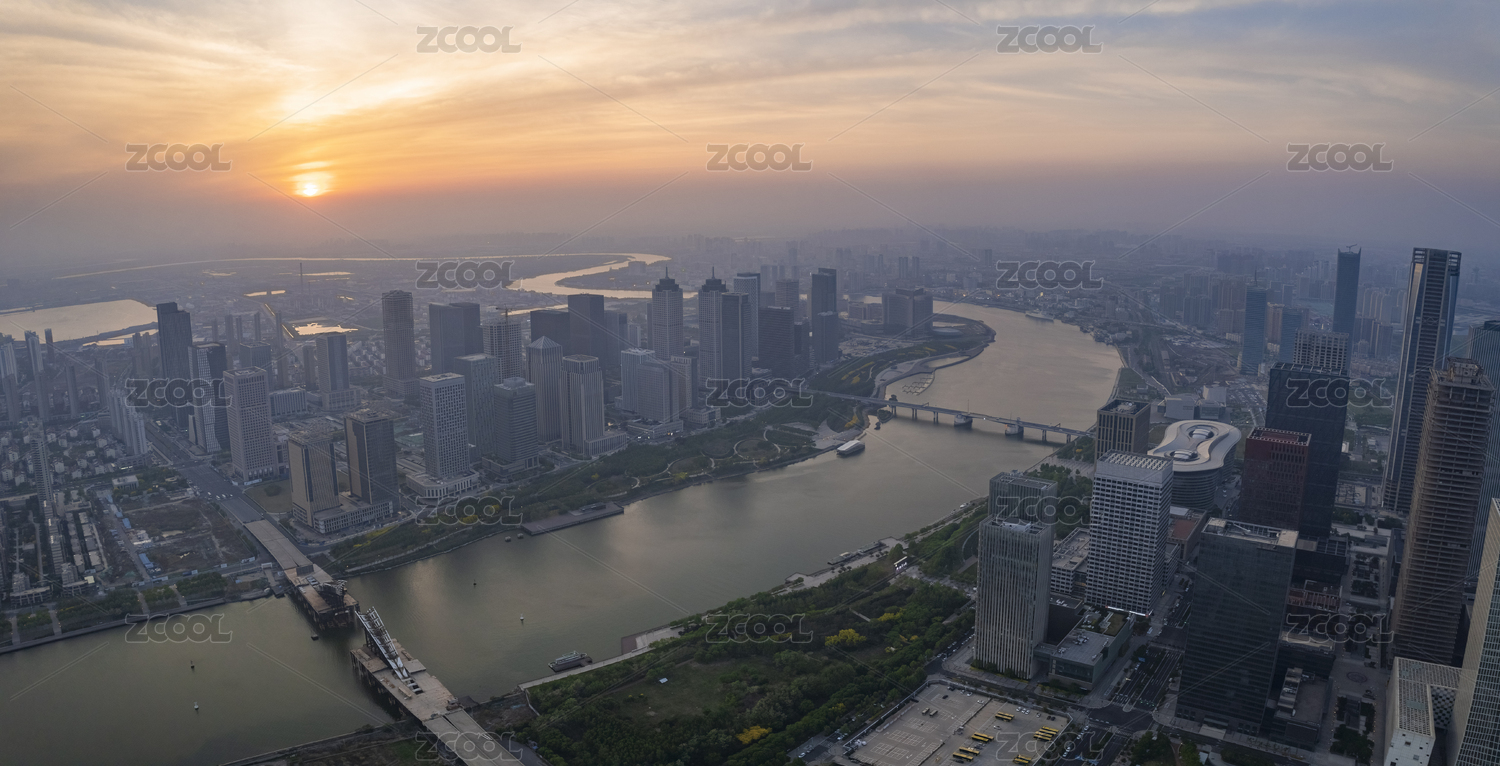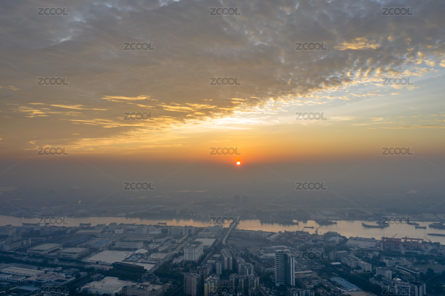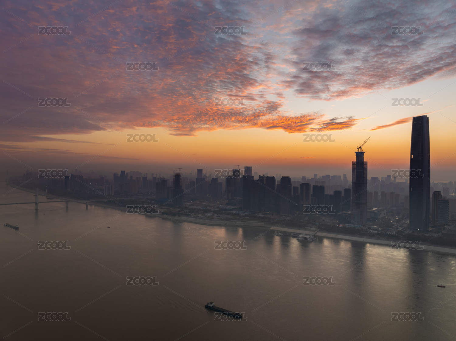 长沙晨雾日出眺望城市CBD航拍摄影配图