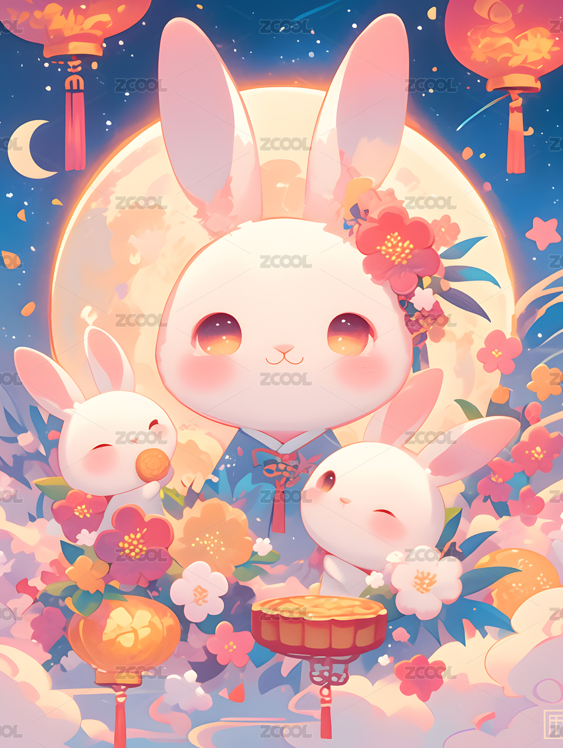 月亮,灯笼,传统,节日,兔子,中秋,庆典,卡通,可爱,佳节
