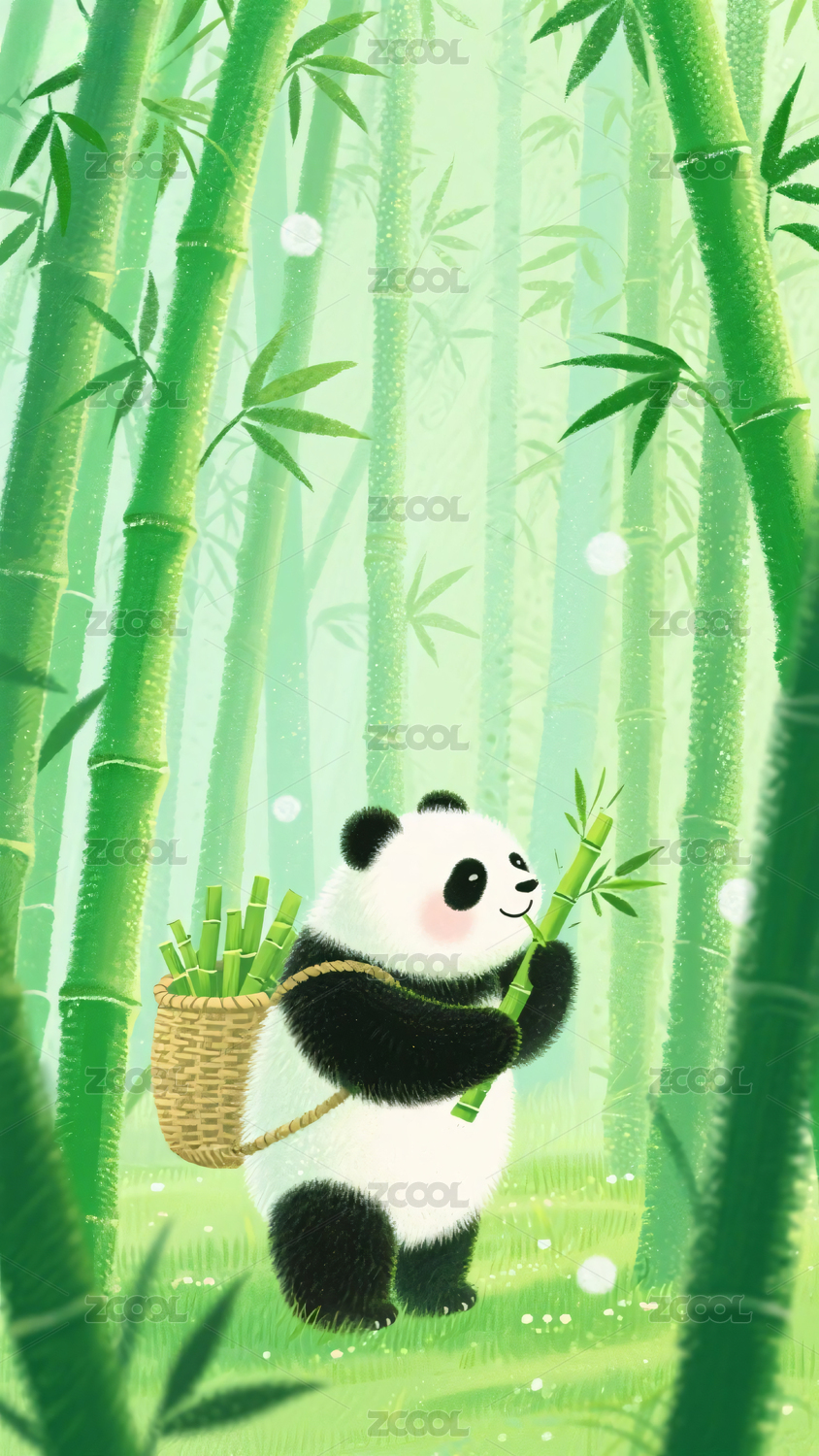 熊猫,动物,可爱,插画,艺术,高清,绿色,卡通,竹子,儿童