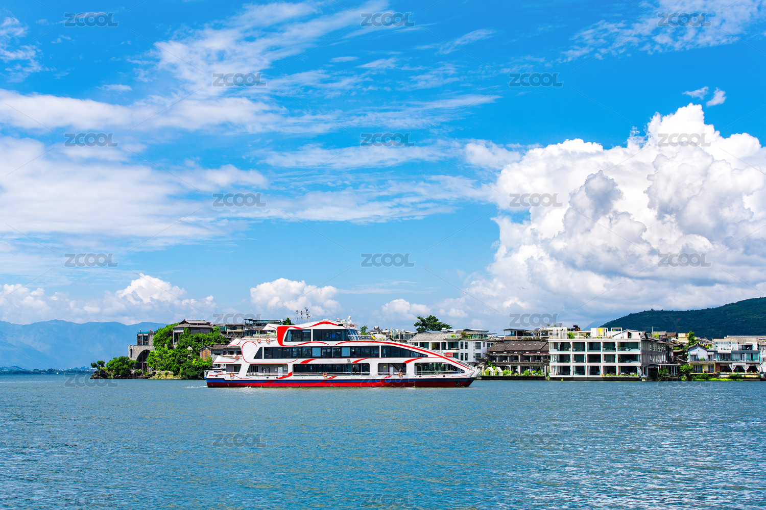 云南,洱海,湖泊,水域,水面,岛屿,天空,云,白色,蓝色