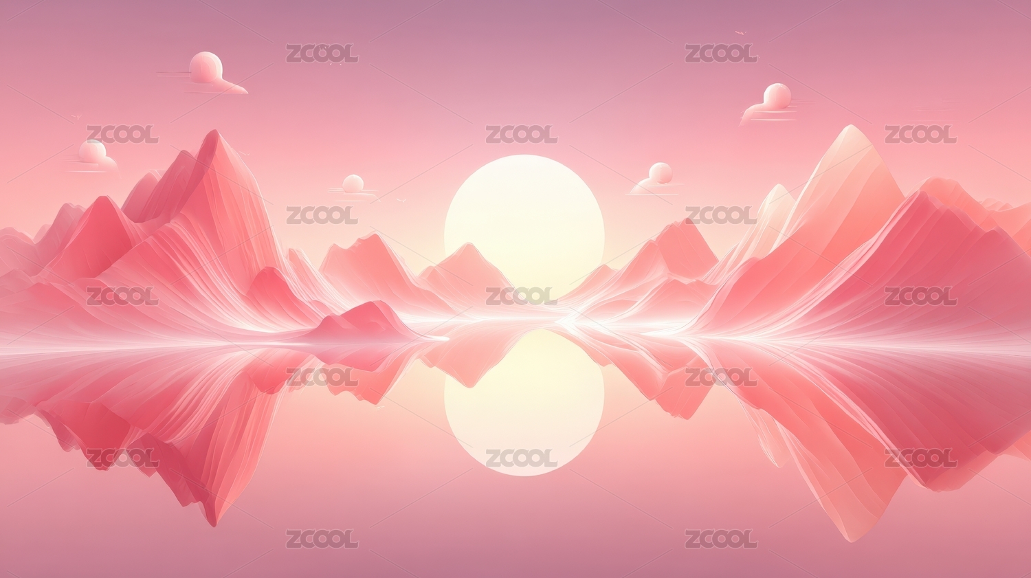 粉红山脉倒影日出