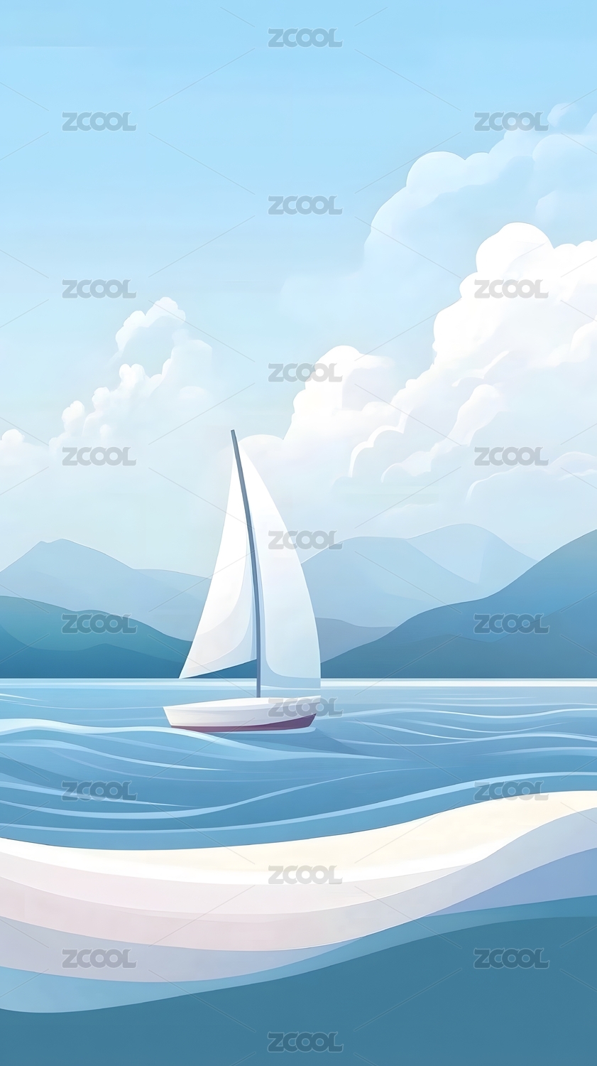 背景,蓝色, 天空, 海, 帆船, 白色, 帆, 云, 山, 水