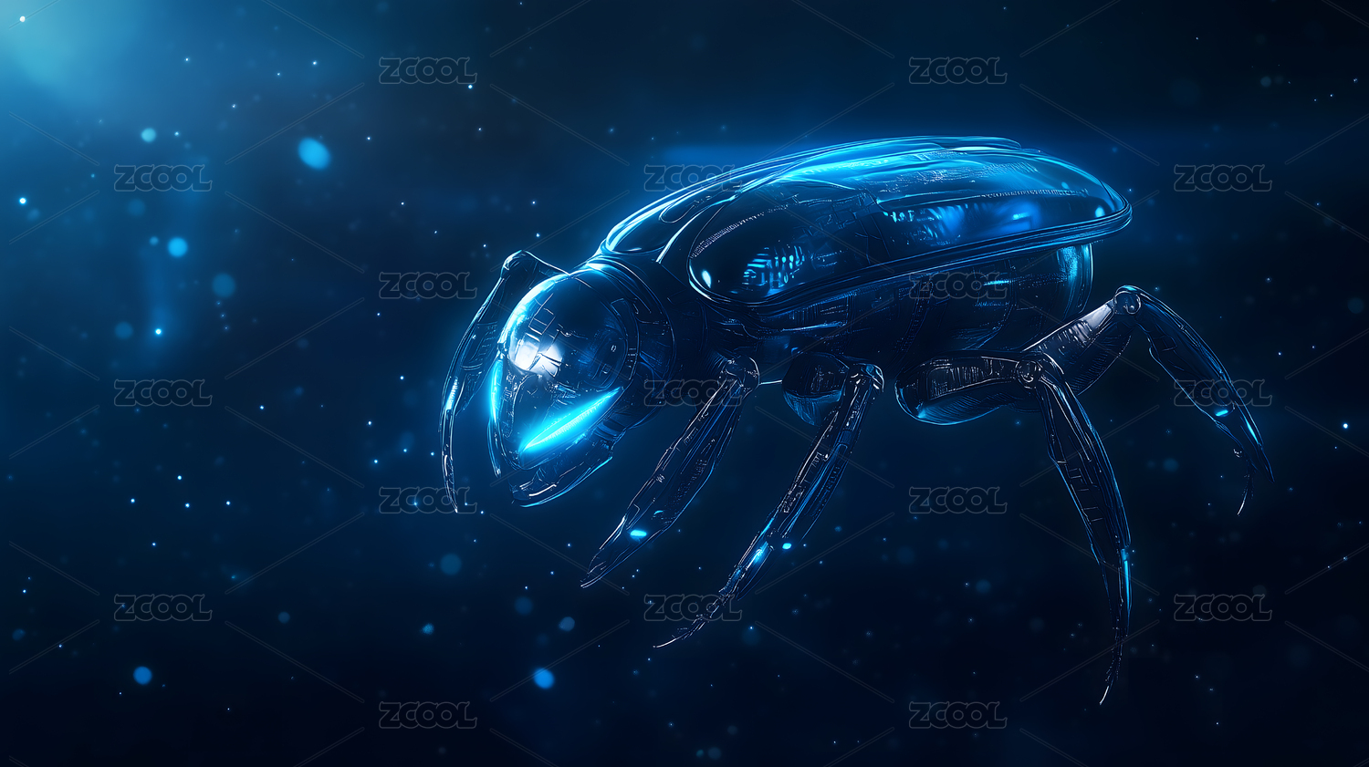 一只未来主义仿生机械甲虫漂浮在虚空中