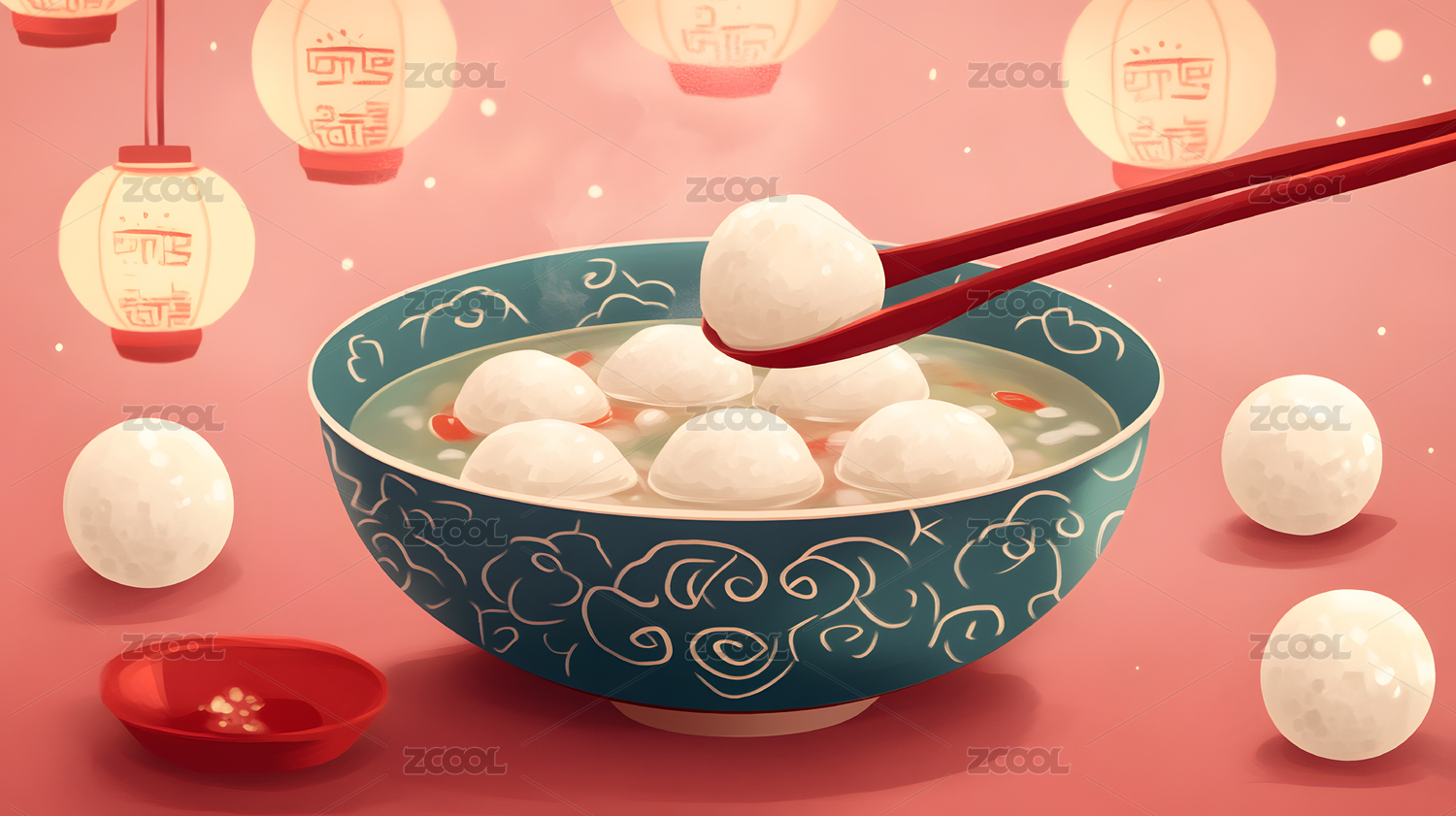 元宵节汤圆创意插画