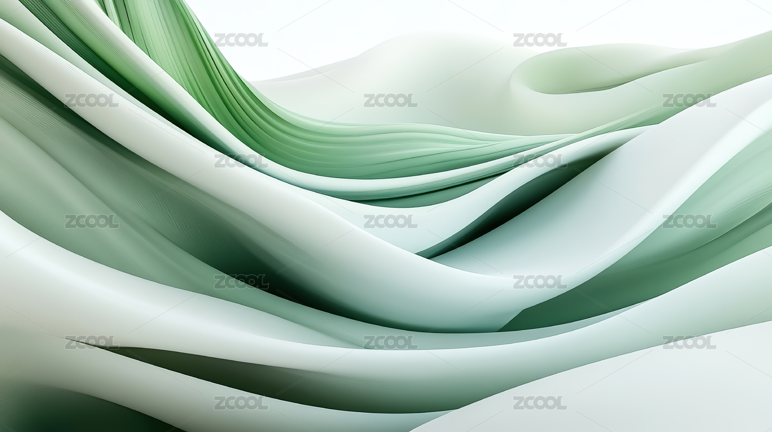 绿色飘逸布料的抽象背景柔和曲线与光影