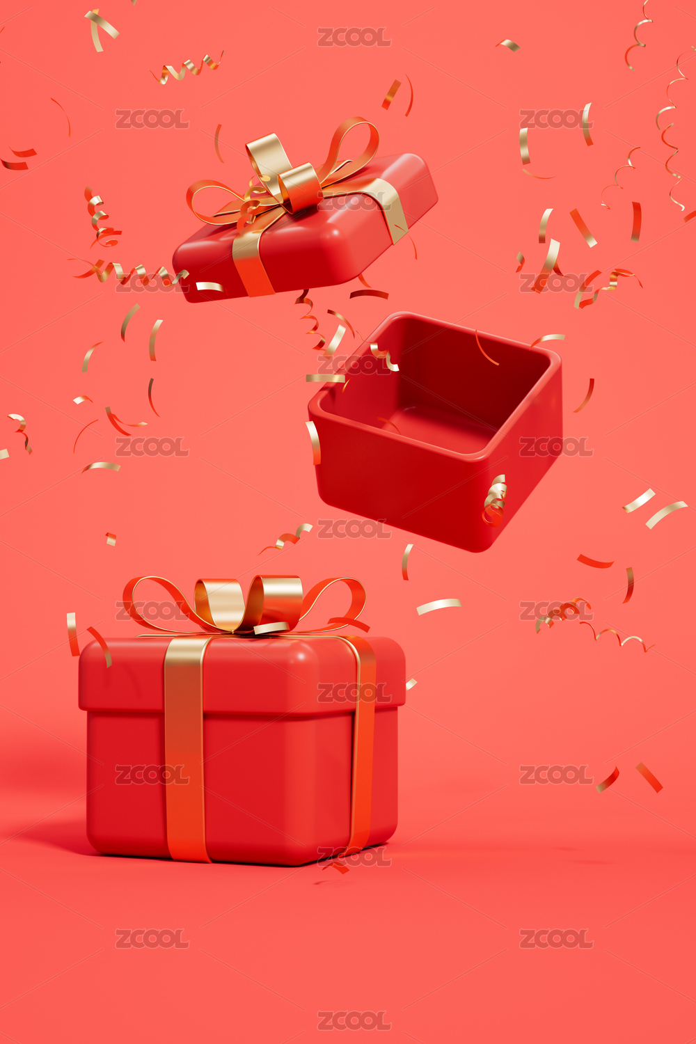 开启,礼物盒,卡通,电商,节日,3D,礼盒,活动,礼花,红色