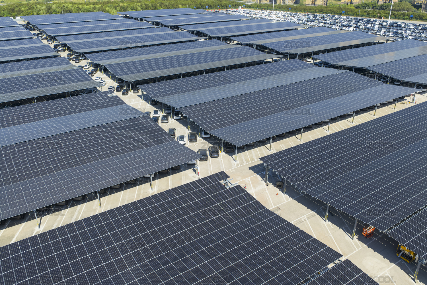 光伏停车场的太阳能电池板车棚