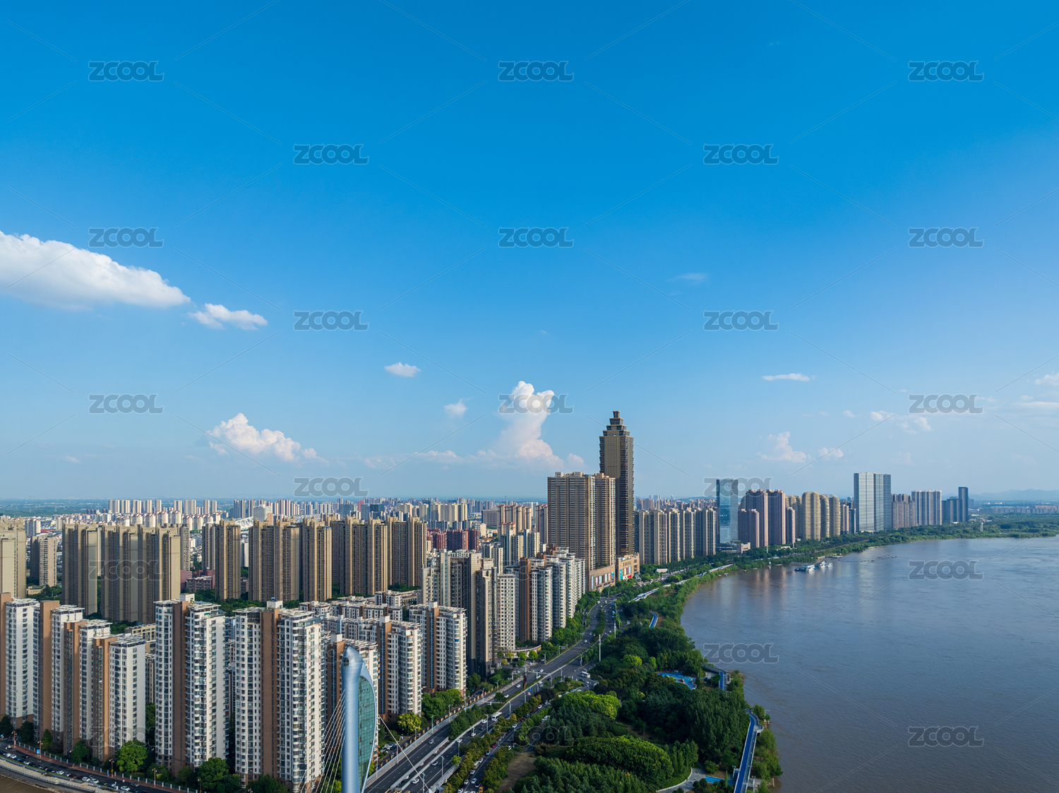 夏季白天航拍安徽芜湖长江青弋江沿岸风光