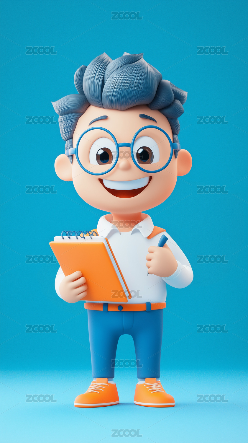 3D卡通商务男士拿着书本