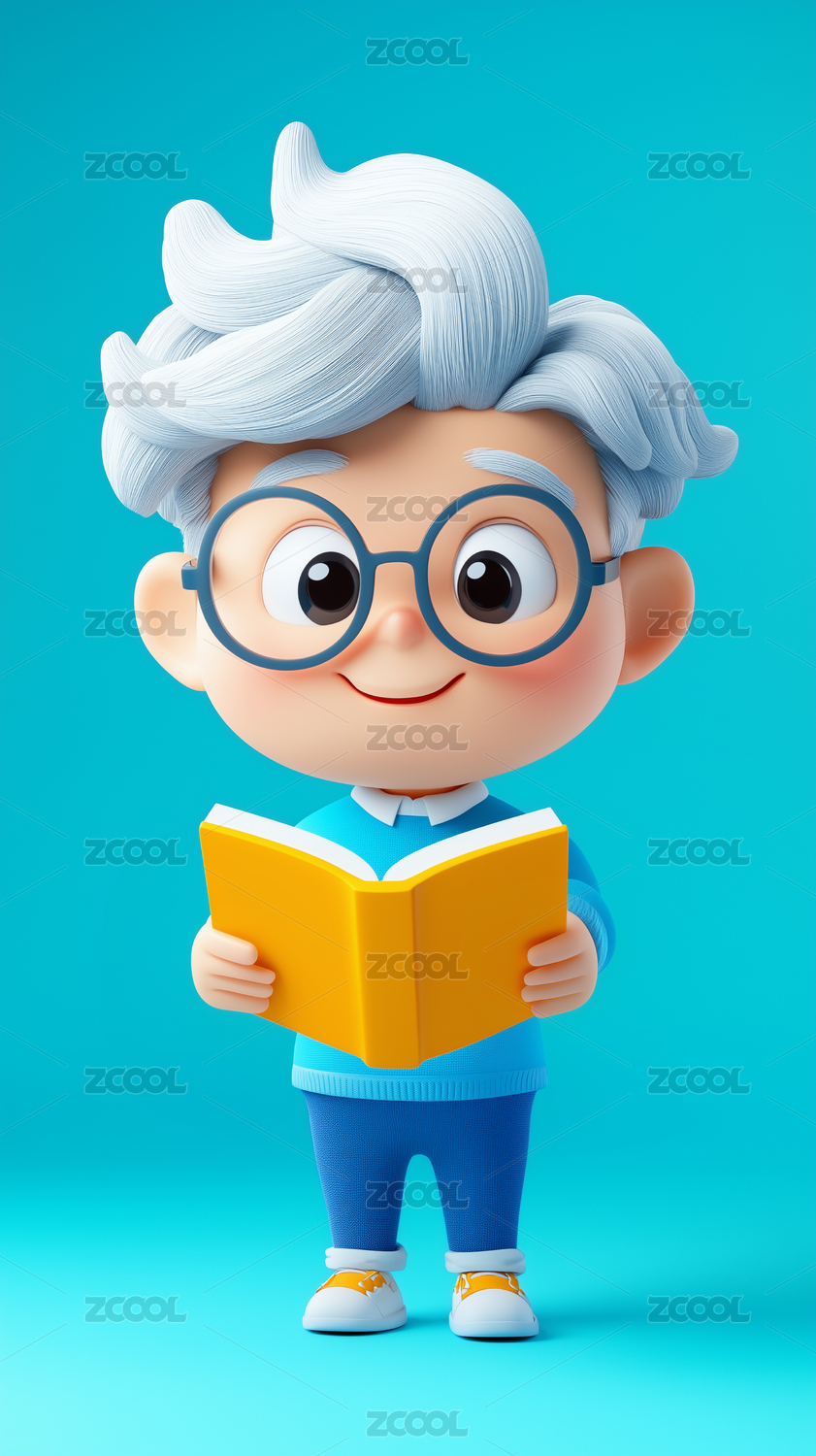 3D手拿书本的爷爷角色插画