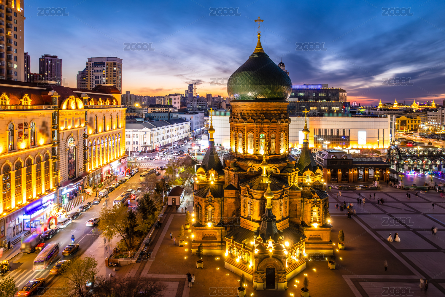 哈尔滨圣索菲亚教堂大教堂城市夜景旅游景点