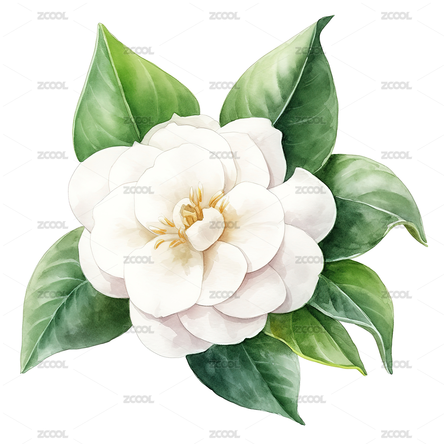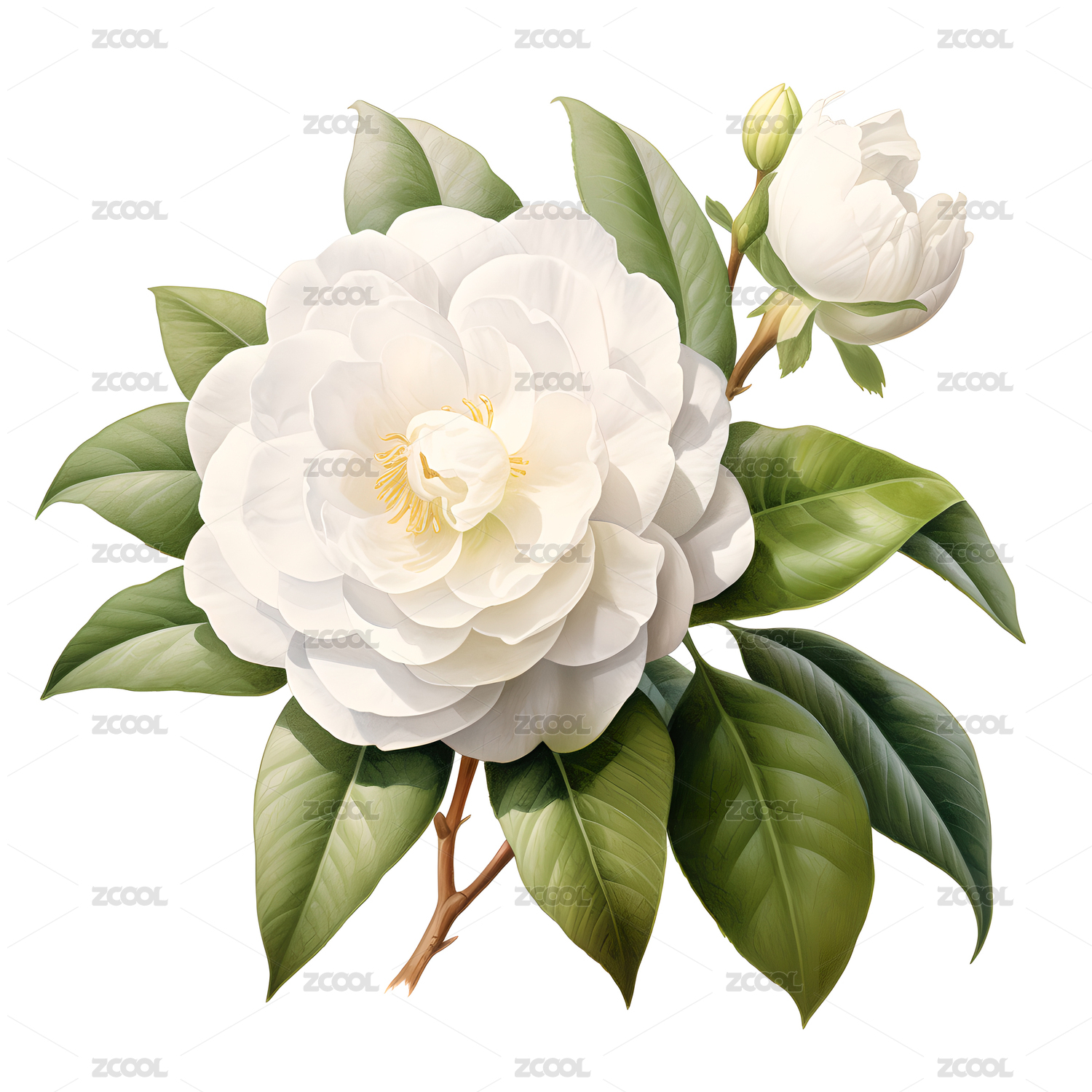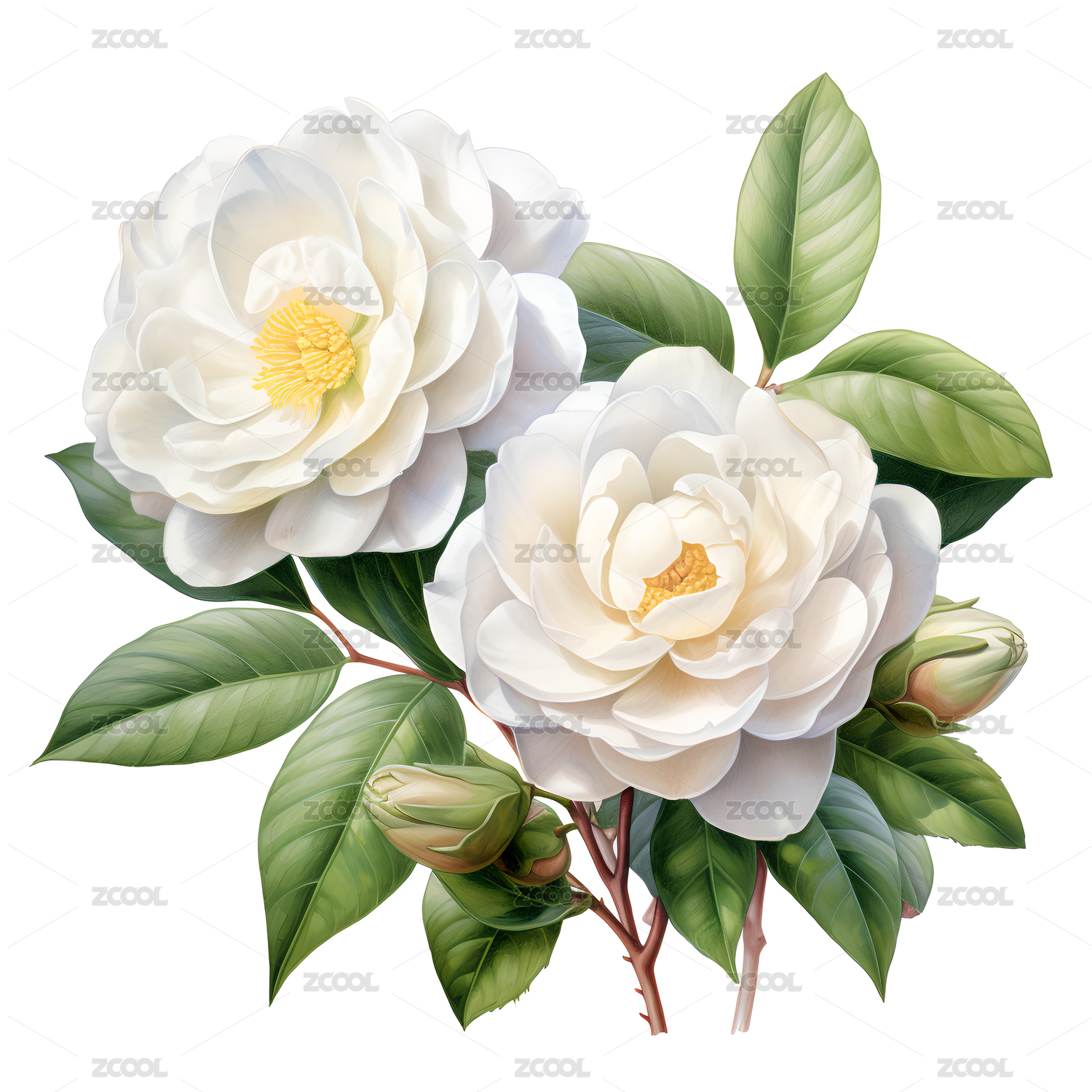 山茶花,插画,白色,花朵,设计,素材,手绘,花束,花卉,鲜花